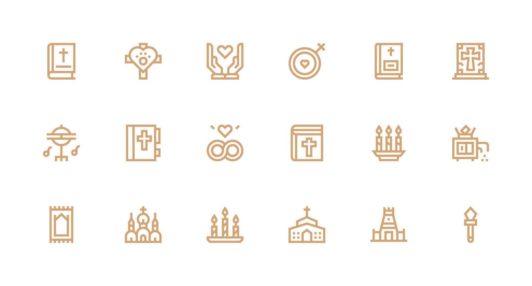 Devotion Design Icons featuring 18 in Strong Stroke Line Style Clean Icon Collection for Web Use vector