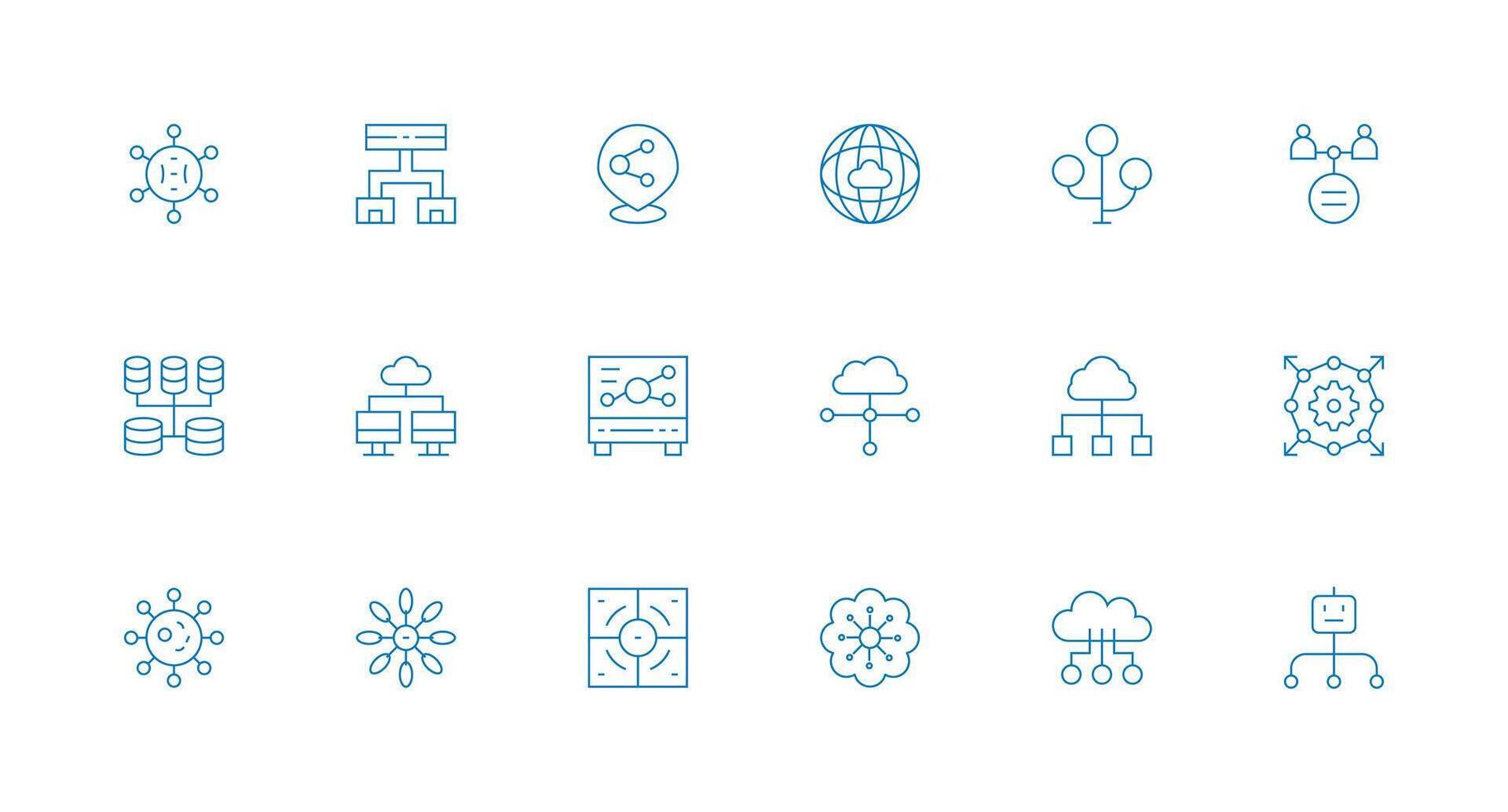 Distributed Visual Pack containing 18 Minimal Line Icons Flexible Icon System for Web Interfaces vector