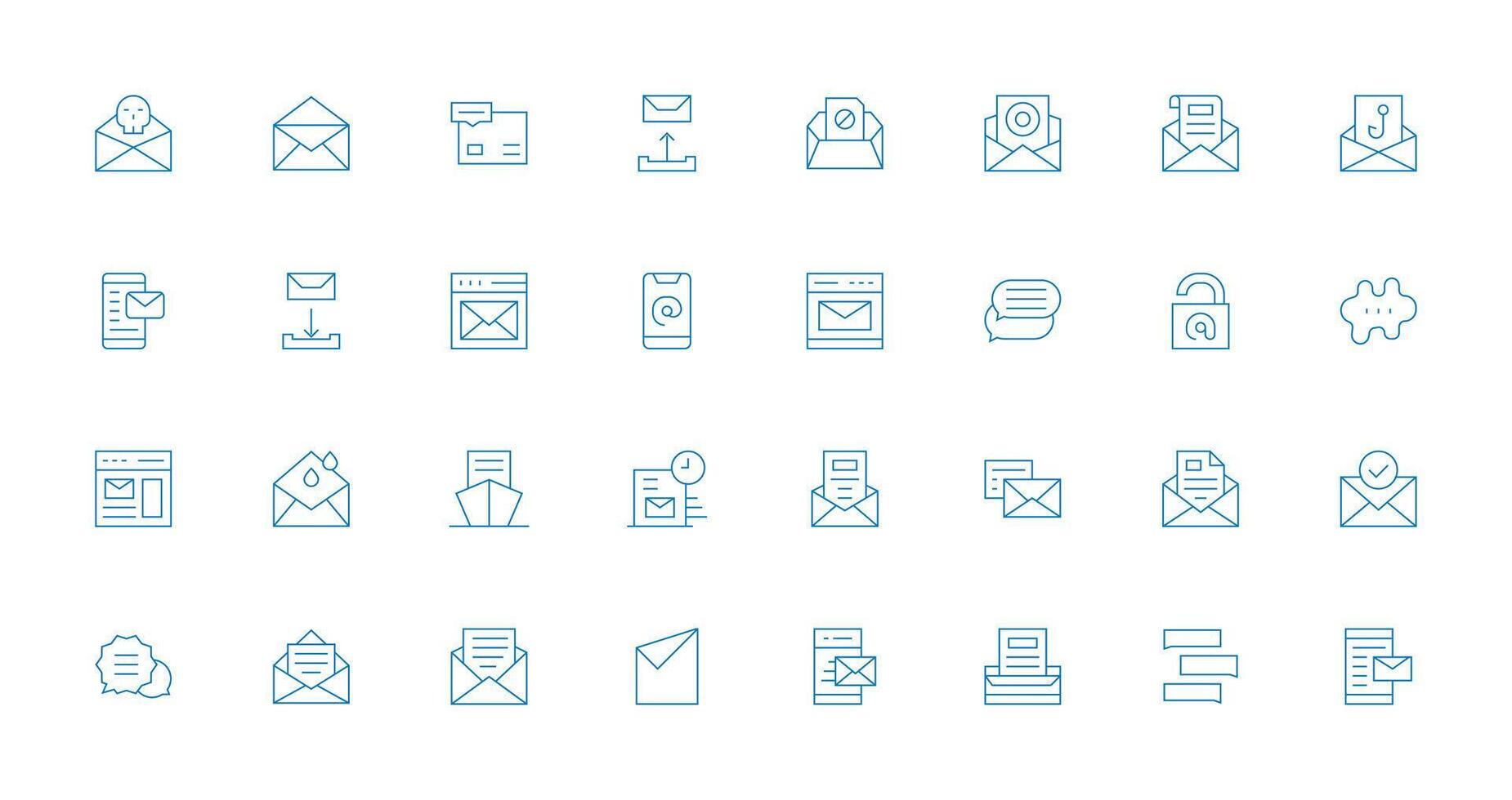 Inbox Icon Set with 32 Thin Line Graphics UI Icon Set Free Vector