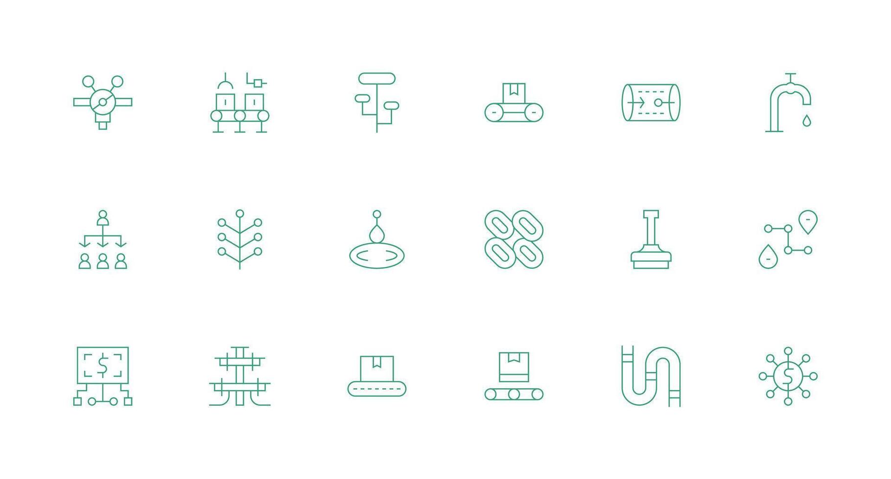 Flow Design Icons featuring 18 in Minimal Line Style Quick Access Icons for UI Development vector
