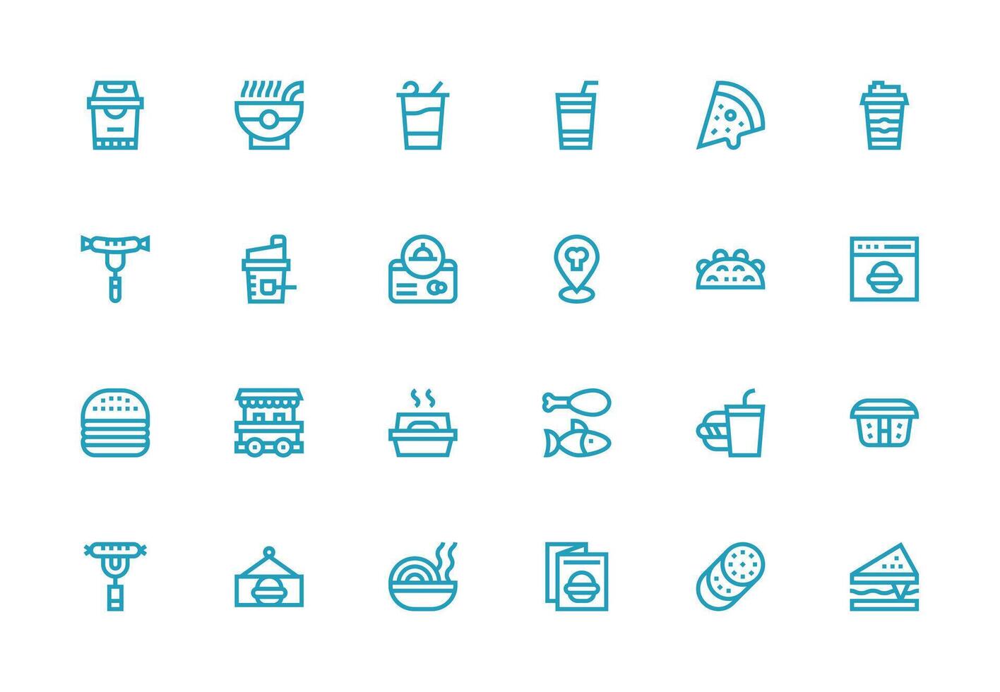 Fast Food Icon Set with 24 Thick Line Line Graphics Sharp Icons for Presentations Free Vector