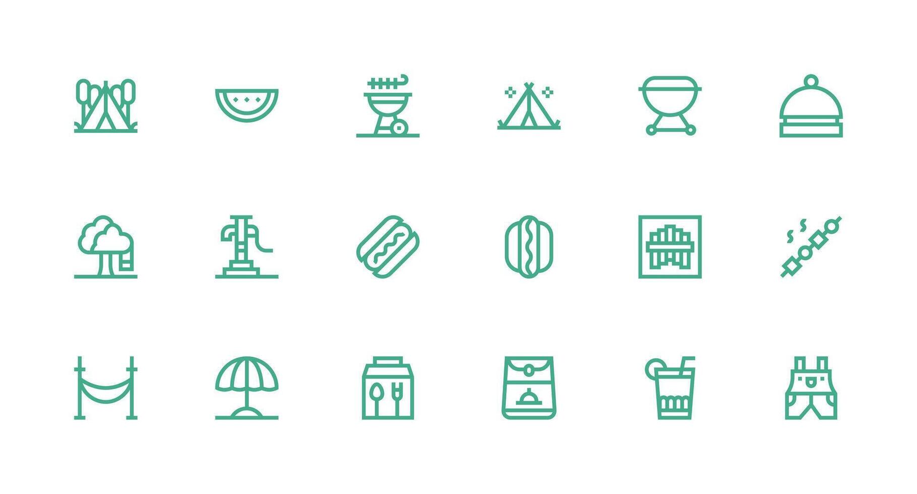 Strong Stroke Line Icons from Picnic Set with 18 Vectors Icon Pack for UI Free Vector