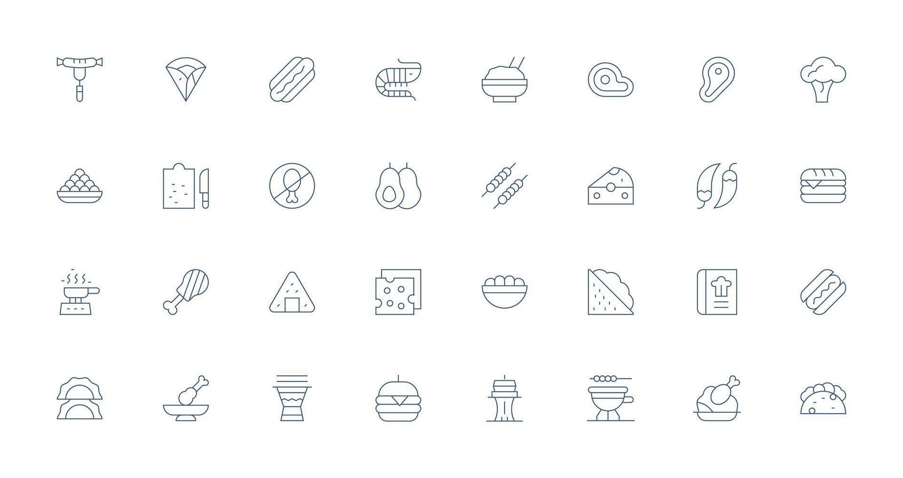 32 Thin Line Icons for Cuisine Graphics Quick Access Icons for UI Development Free Vector