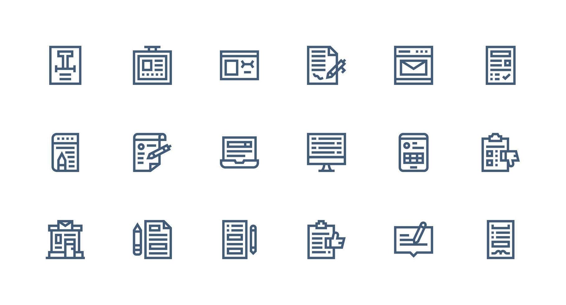 Online Form Icon Set with 18 Strong Stroke Line Graphics Digital Icon Collection Free Vector