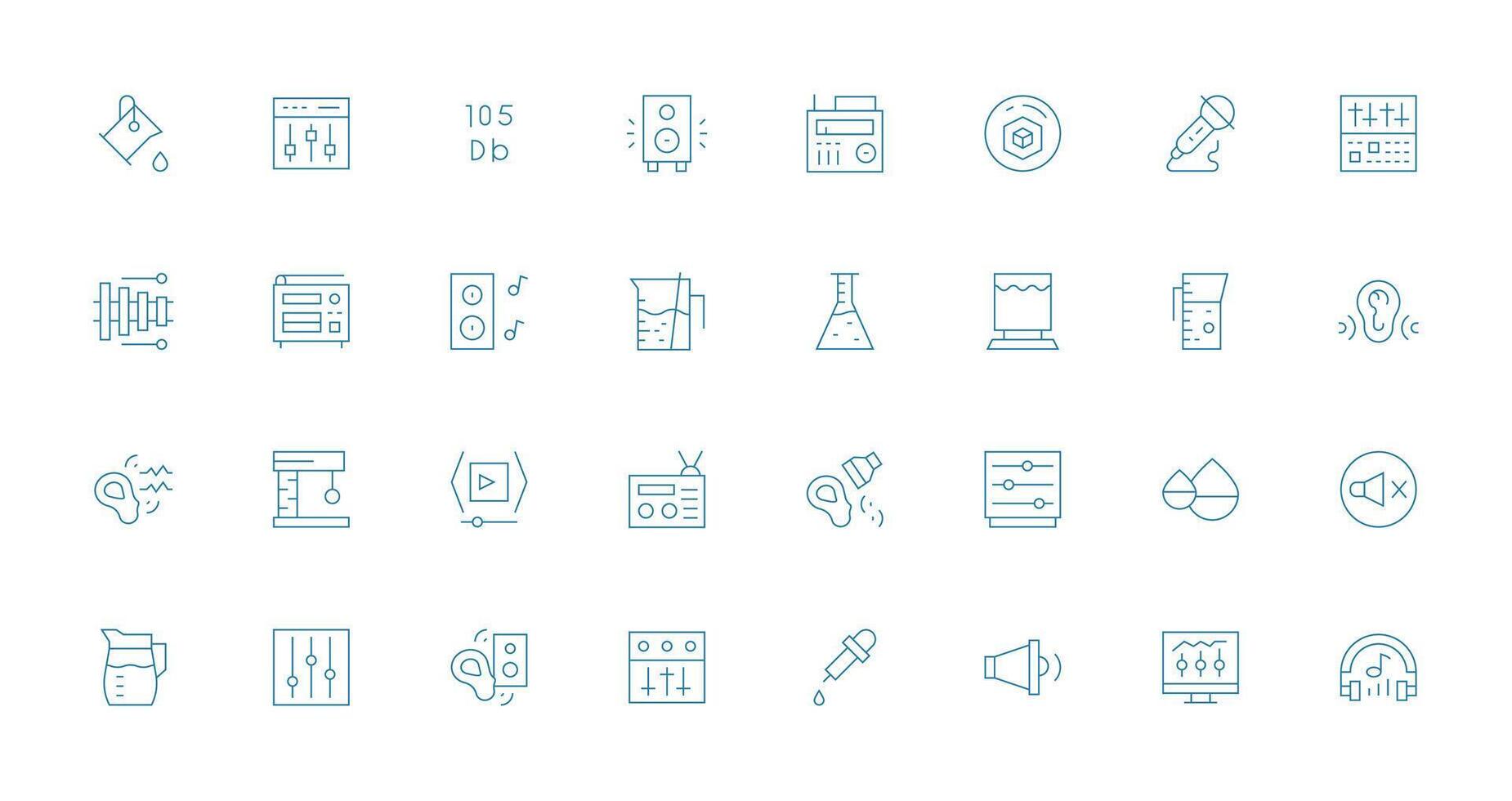Volume Icon Set with 32 Thin Line Graphics Basic Icon Series Free Vector
