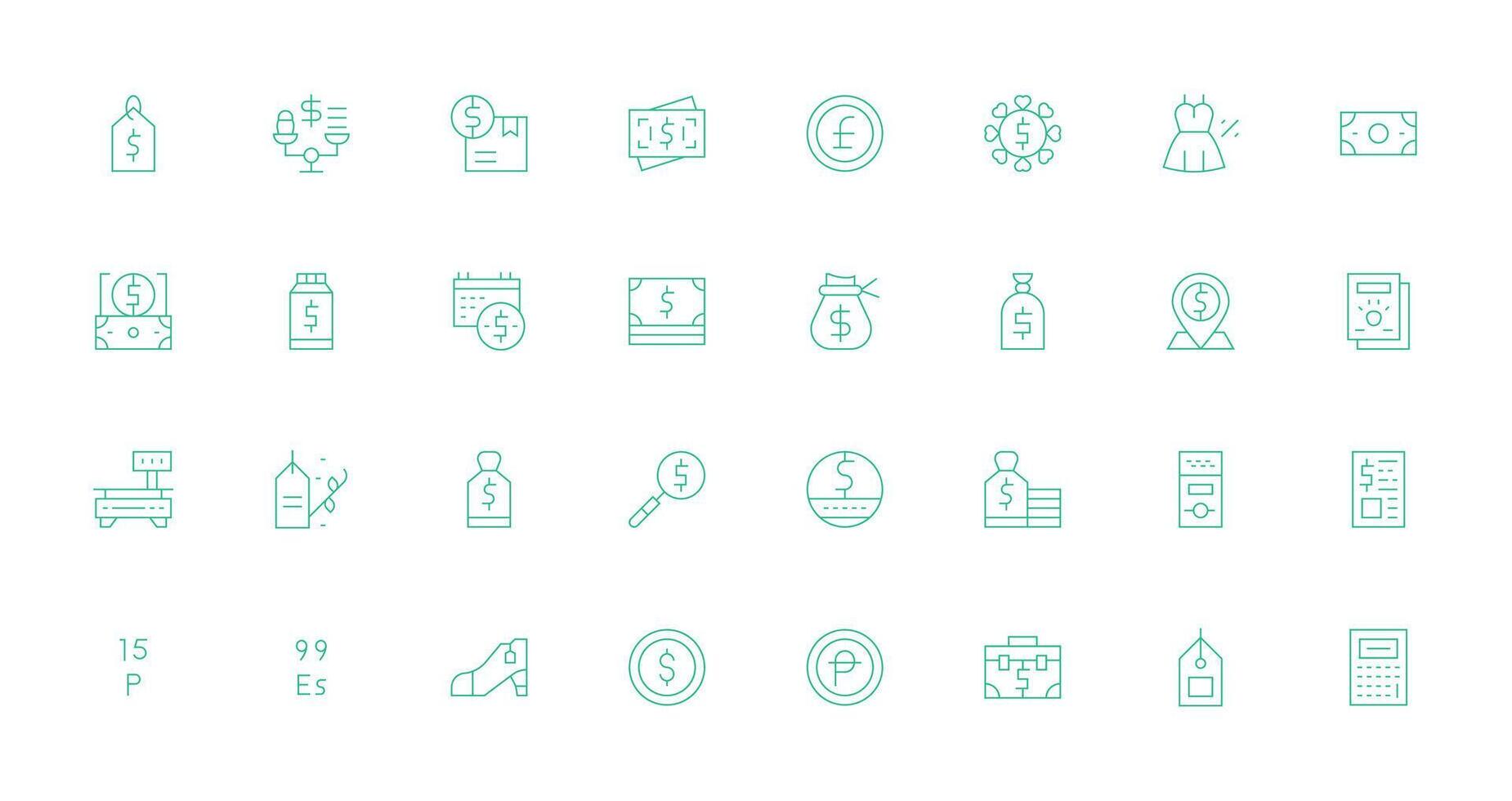 32 Thin Line Designs for Price Icons Scalable Icons for Cross-Platform Interfaces vector
