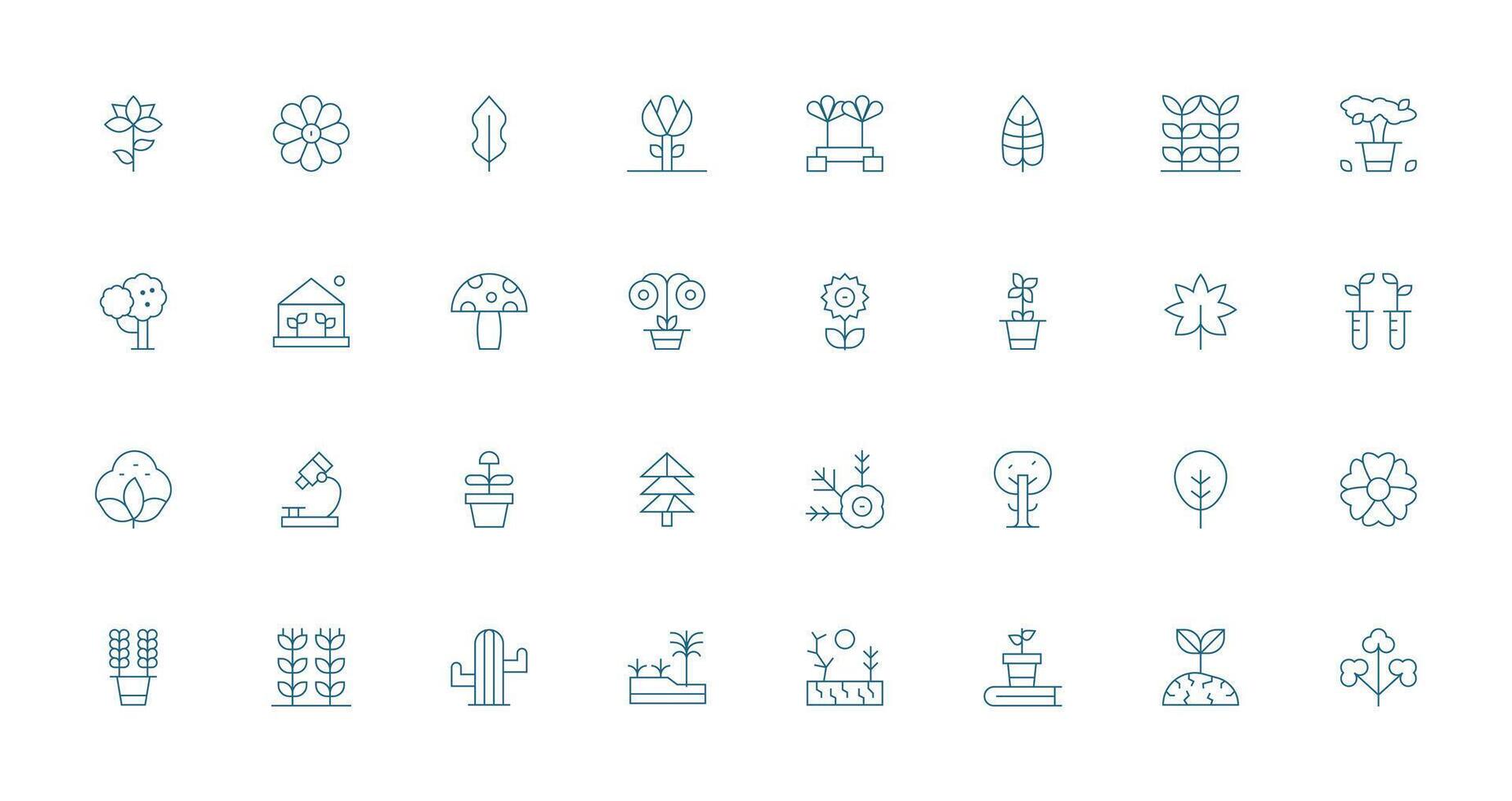 Botany Icon Set with 32 Thin Line Graphics Style Icon Set Free Vector