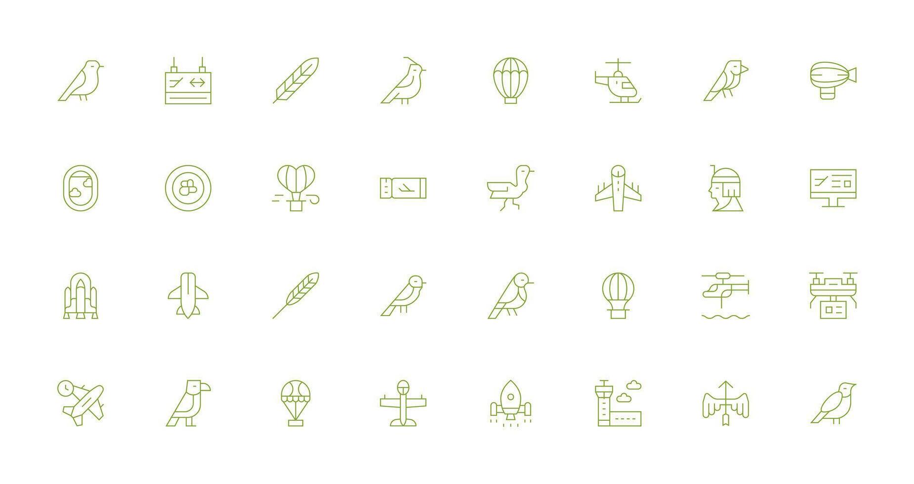 32 Icons for Flight in Thin Line Format Full Icon Library for UI Designers vector