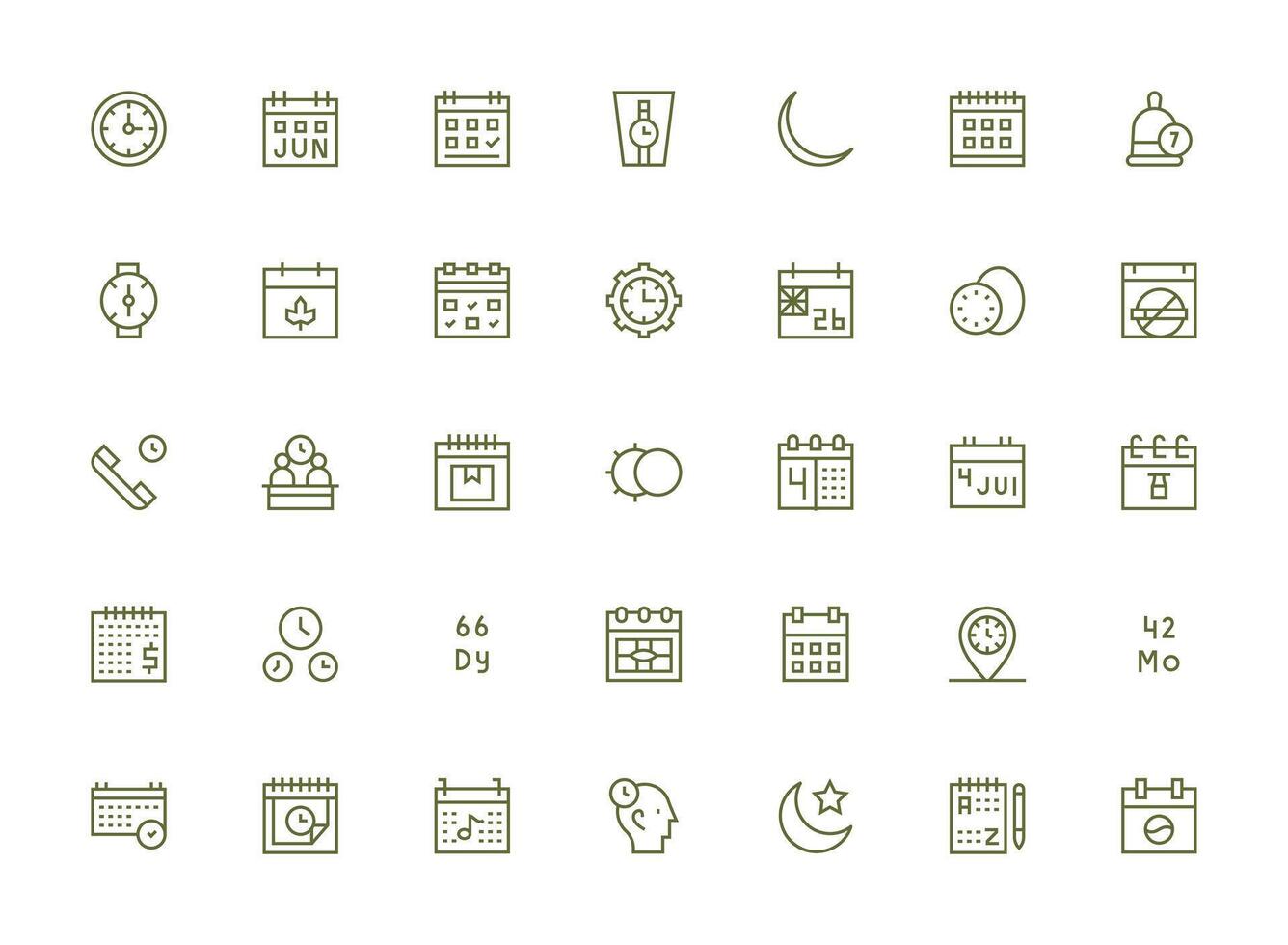 Calendar Visual Pack containing 35 Regular Clean Line Icons Neatly Designed Icons for Web Platforms Free Vector