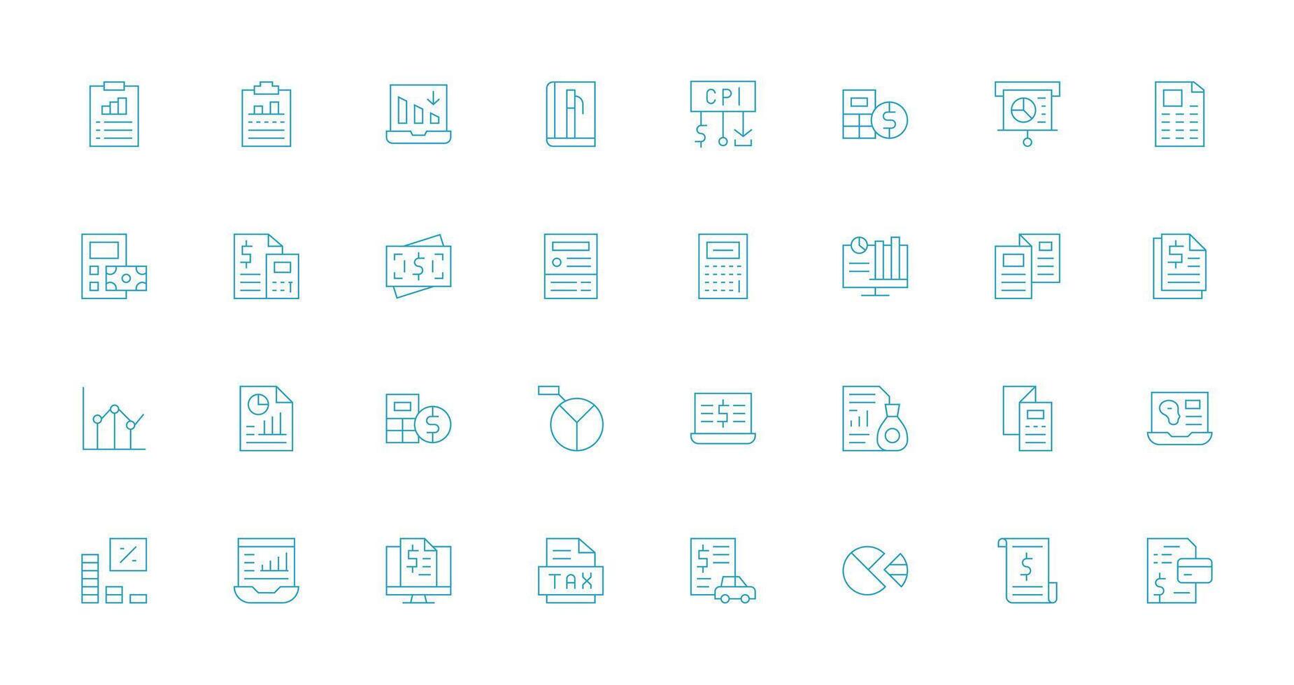 Thin Line Style Financial Report Icons with 32 Vectors Interface Icon Collection for Daily Projects
