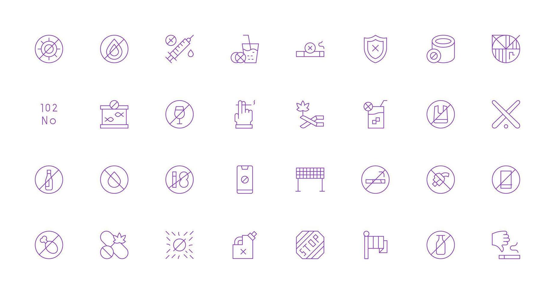 Prohibition Icon Set with 32 Thin Line Graphics Icons Built for Visual Consistency Pack vector