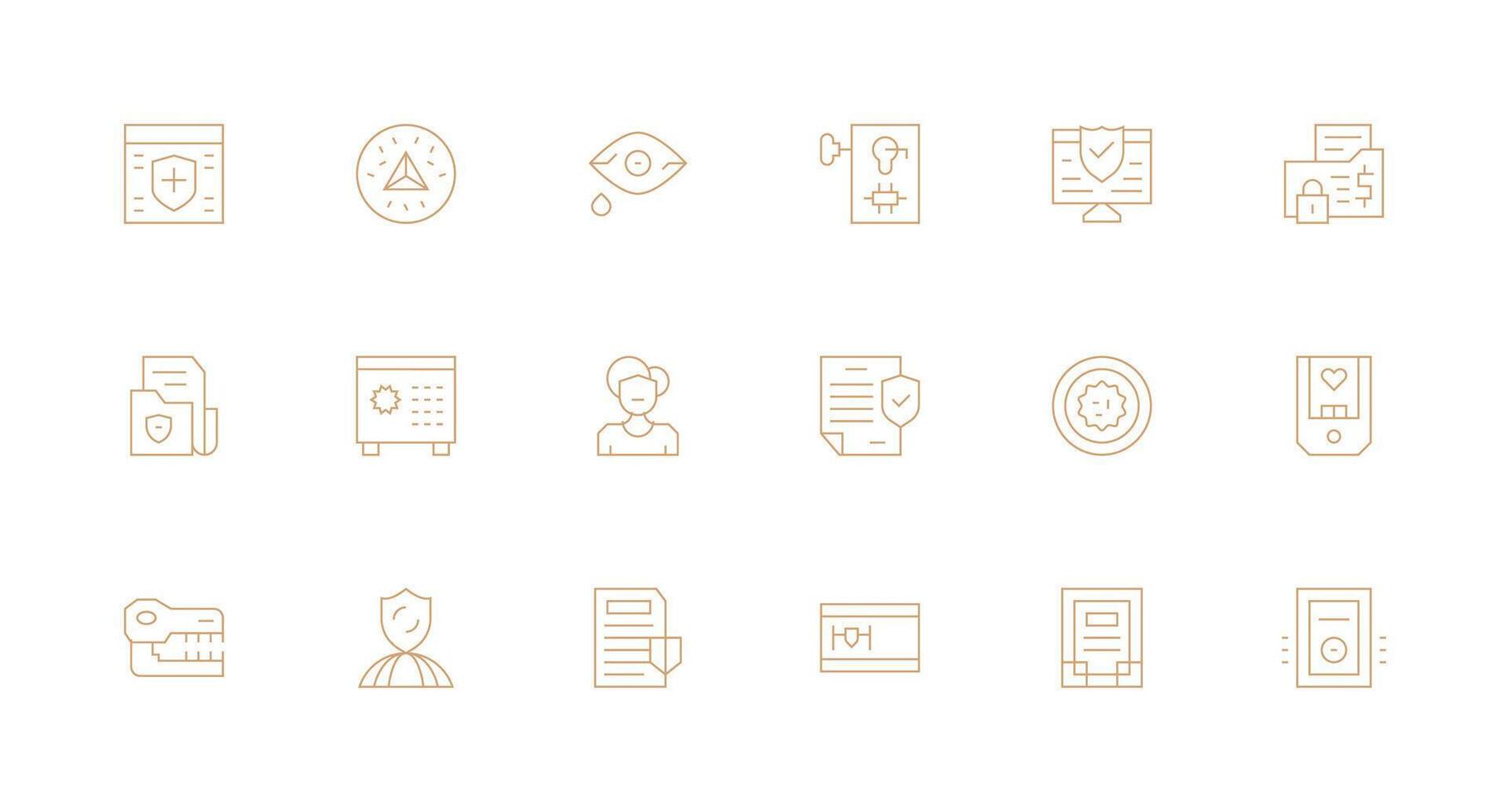 Protected Data Icon Collection with 18 Minimal Line Designs Scalable Icons for Cross-Platform Interfaces Free Vector