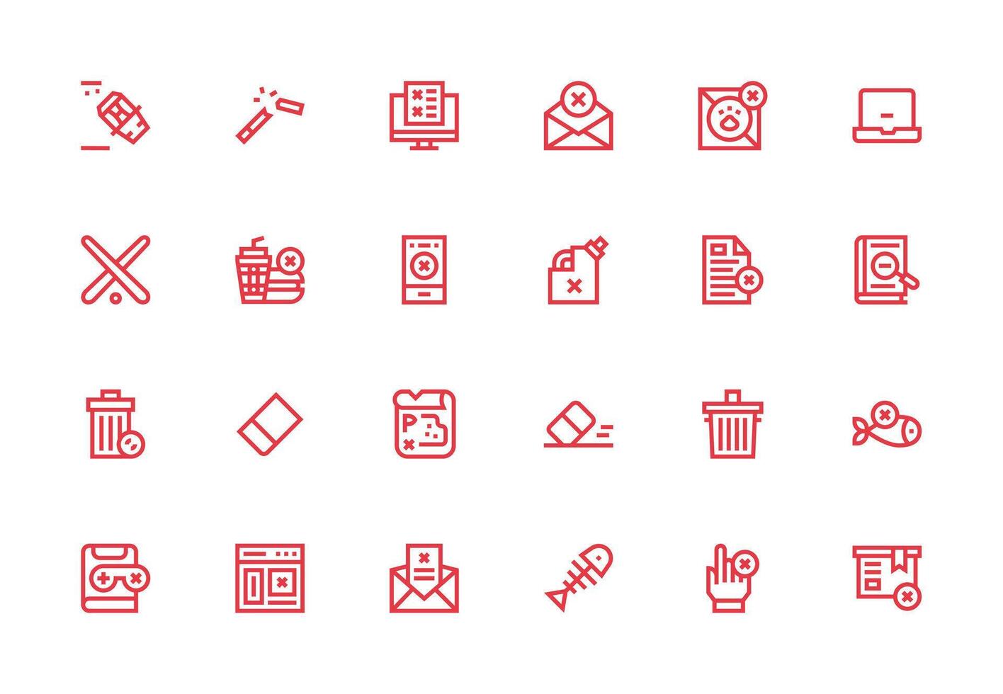 Delete Visual Pack containing 24 Thick Line Line Icons Minimal Icon Set for Interface Projects Free Vector