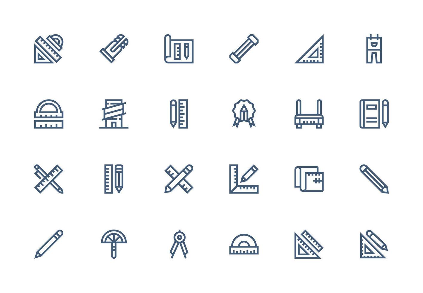 Drafting Visual Pack containing 24 Thick Line Line Icons Complete Icon Set for Mobile Apps vector