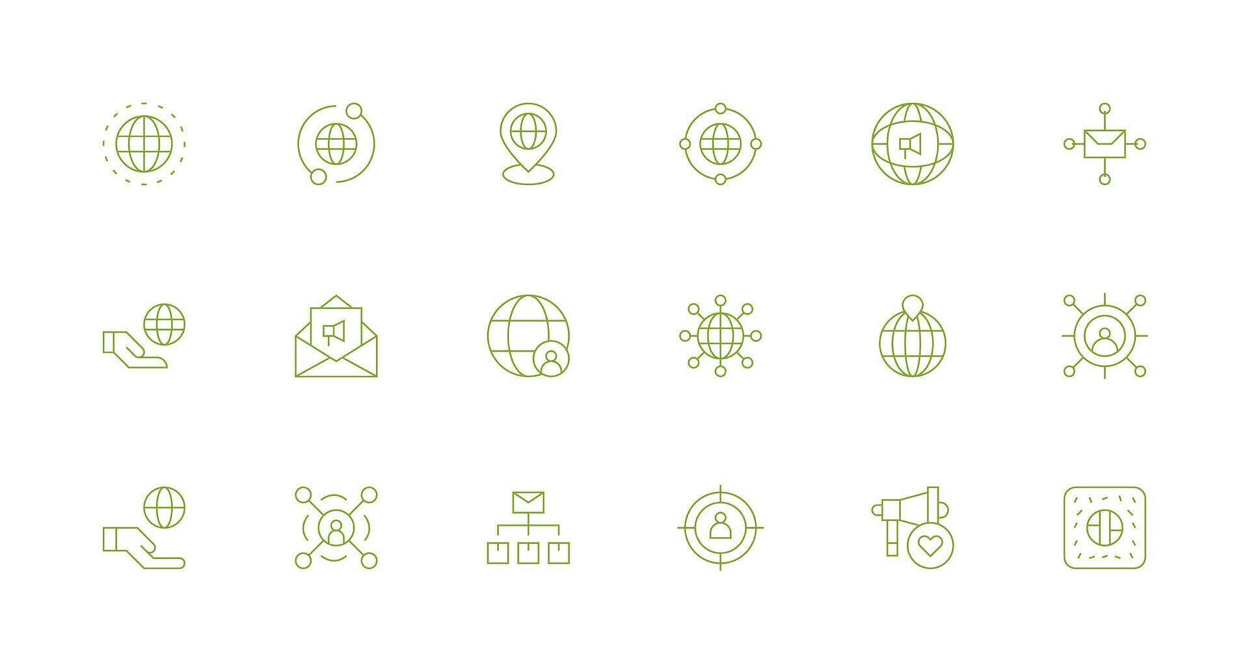 Outreach Icon Set with 18 Minimal Line Graphics Well-Structured Icons for Creative Use vector