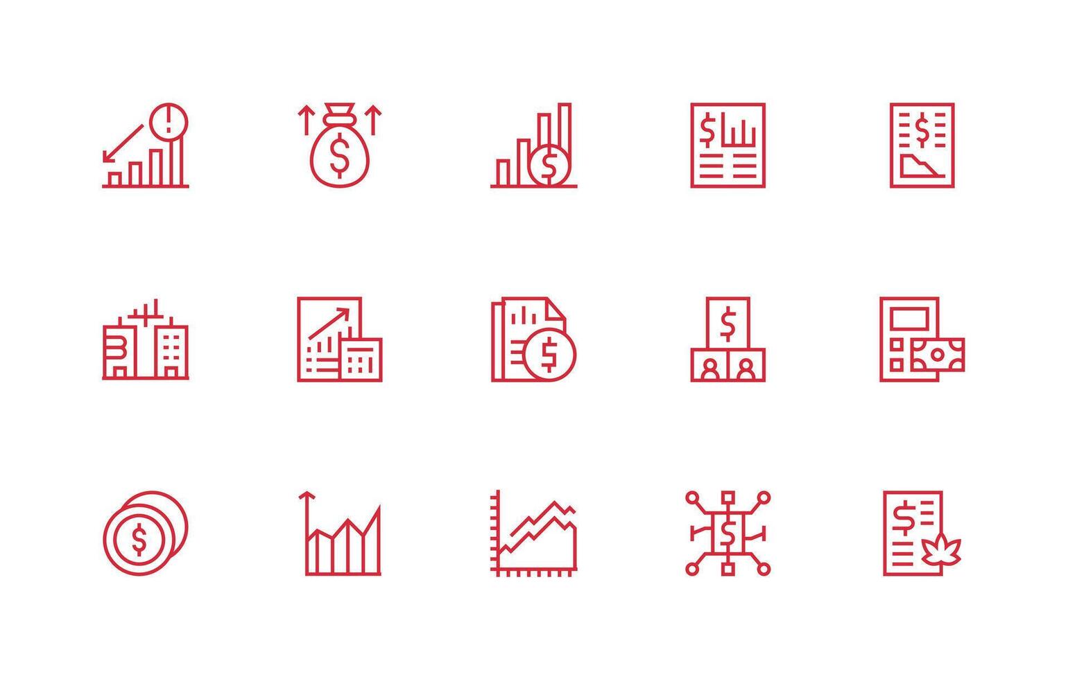 Revenue Design Icons featuring 15 in Regular Line Style Clear and Concise Icon Set Collection vector