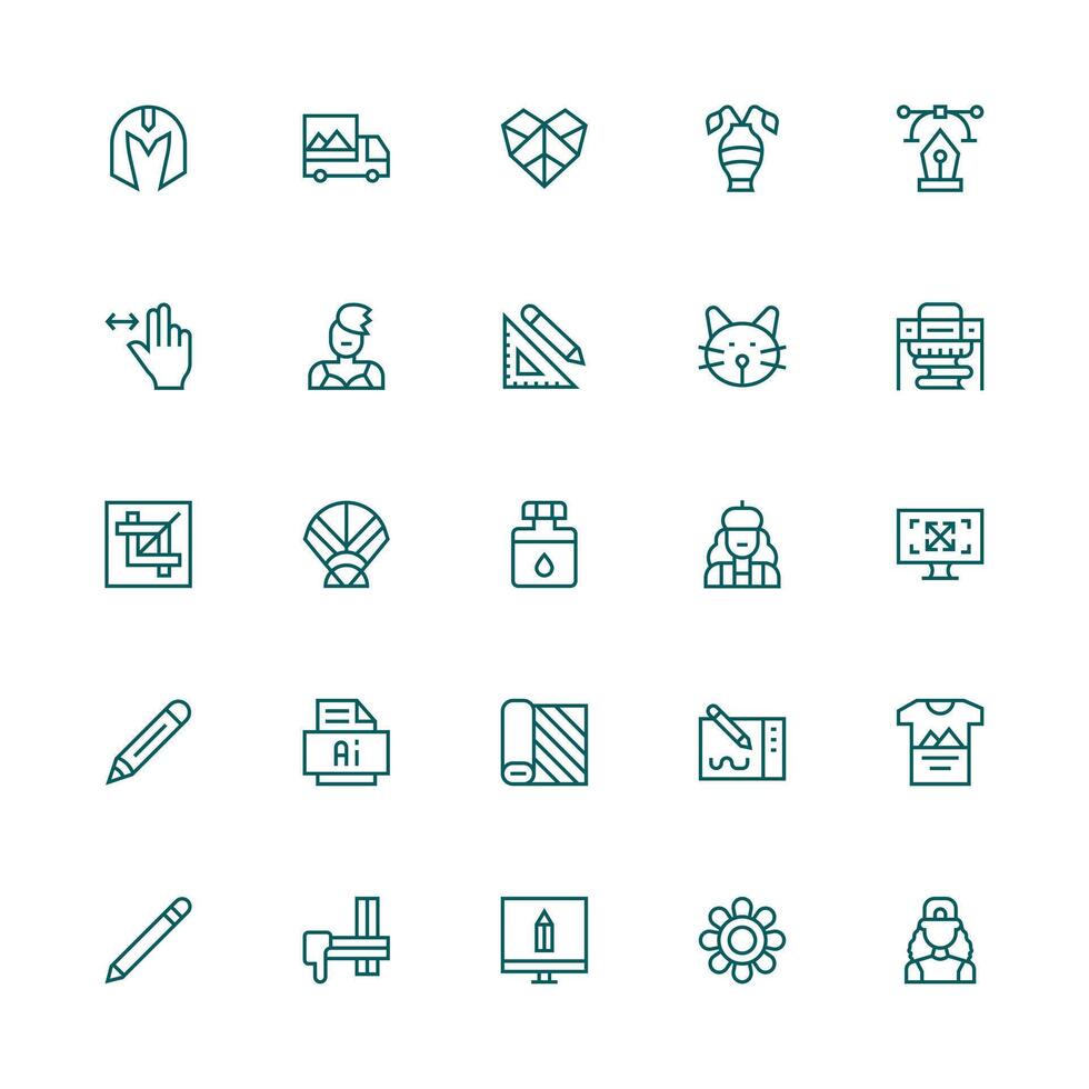Graphic Design Icon Set with 25 Medium Stroke Outline Graphics Complete Icon Bundle for Web Design Free Vector