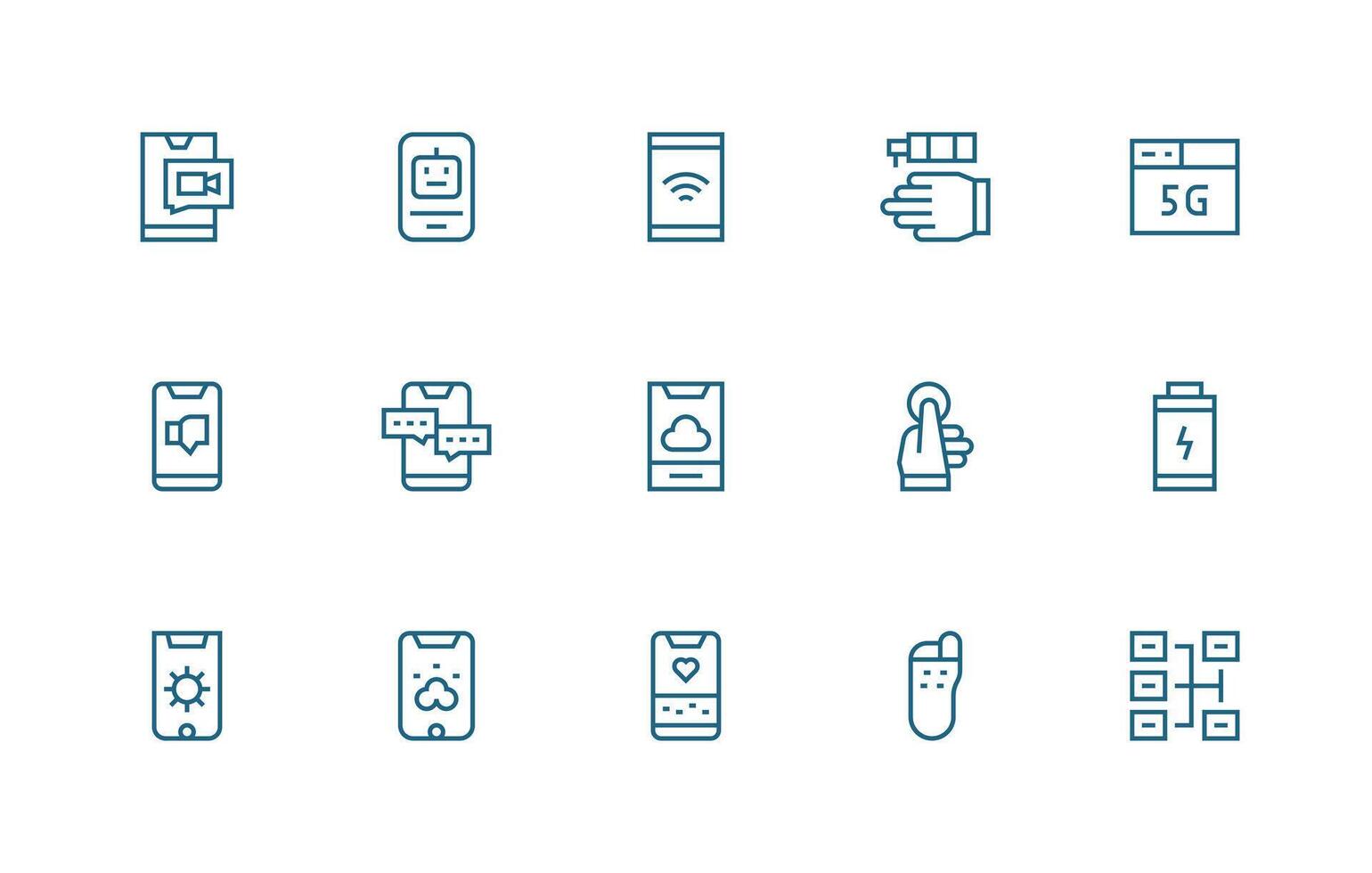 15 Icons for Smartphone in Regular Line Format Clear and Concise Icon Set Collection vector