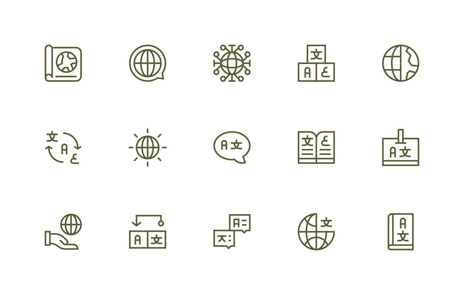 Multilingual Icon Set with 15 Regular Line Graphics Outline Icon Pack vector