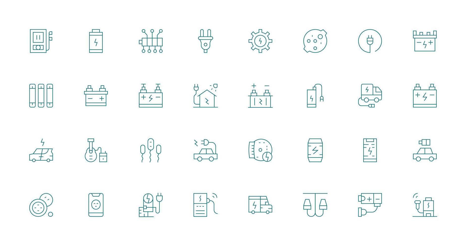 Charging featuring 32 Icons in Thin Line Design Clear and Concise Icon Set Collection vector