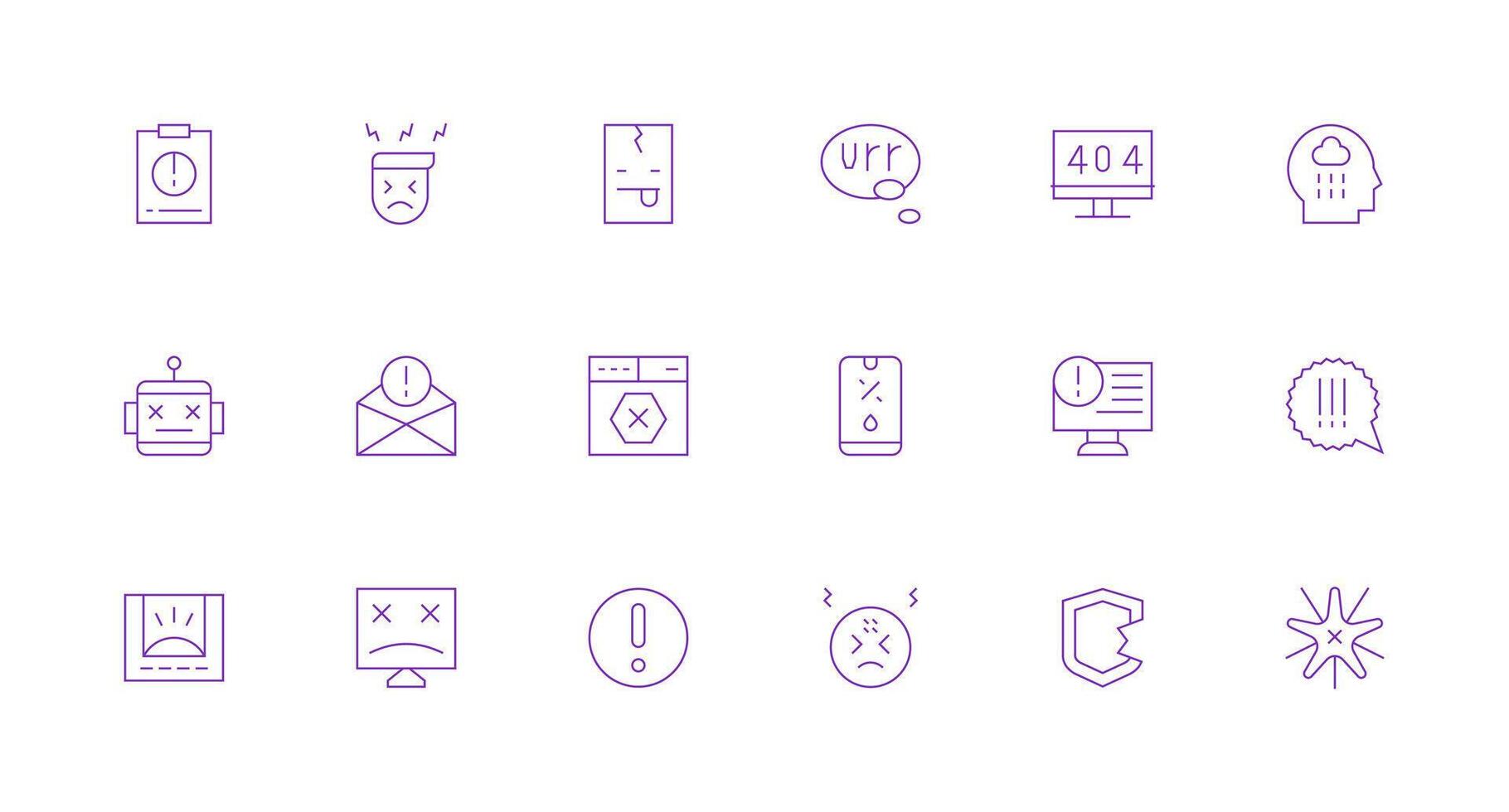 System Error Design Icons featuring 18 in Minimal Line Style Web Icon Collection Free Vector