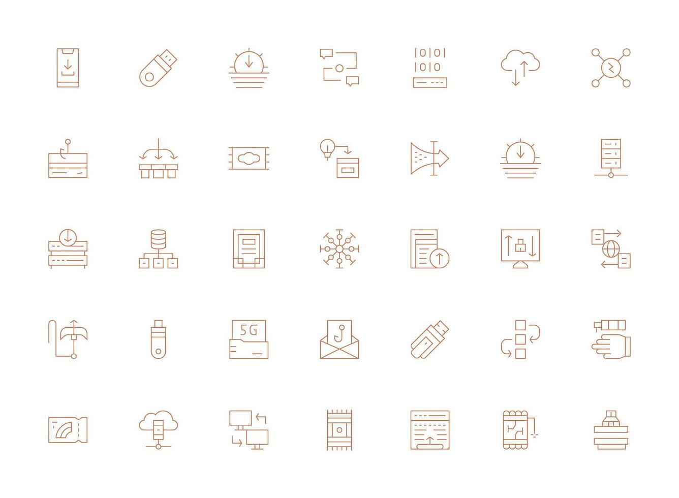 Data Transfer Icon Set with 35 Light Line Graphics Customizable Icon Series for Mobile Screens Free Vector