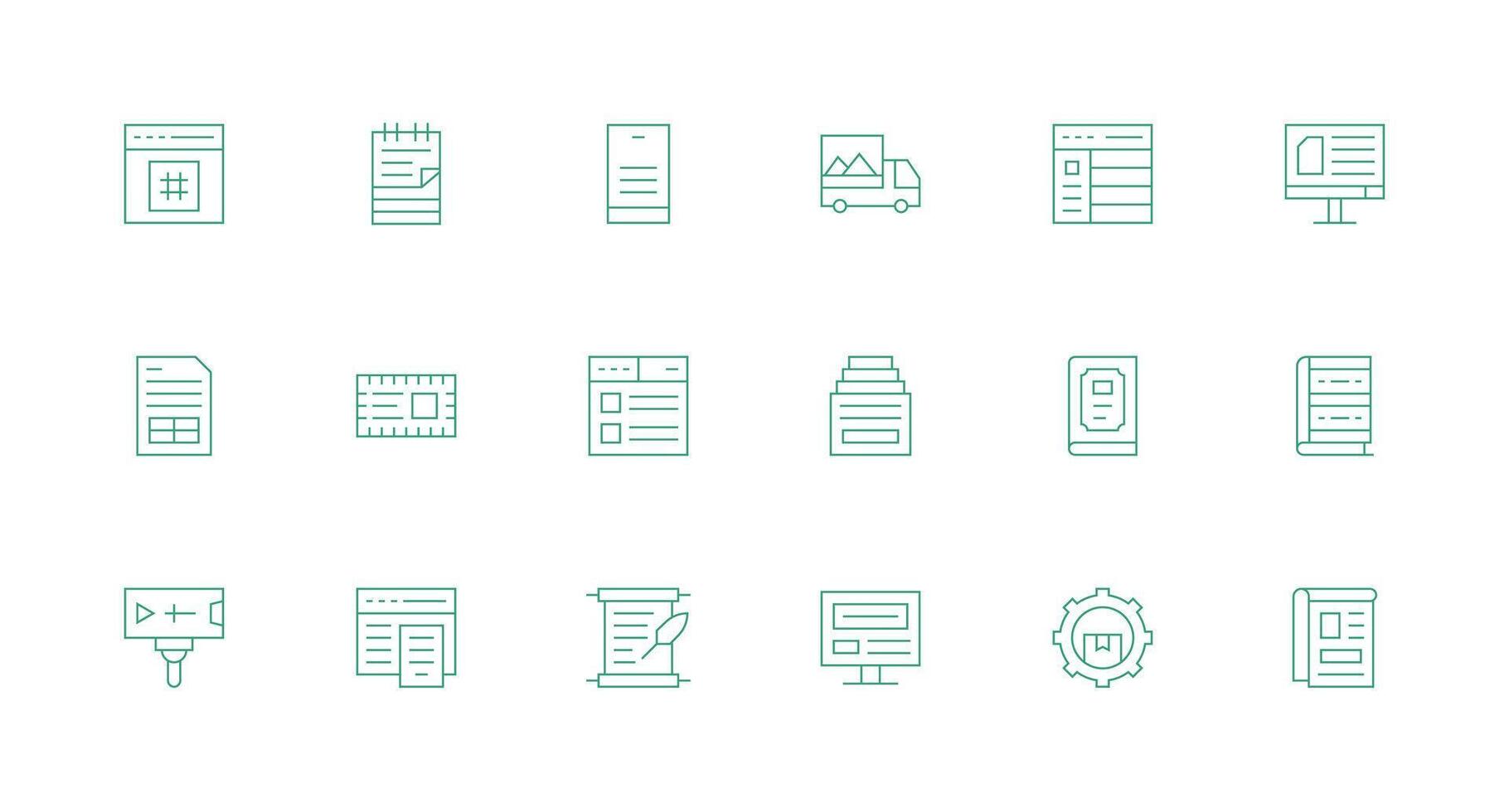 18 Minimal Line Style Icons from Content Management Collection Reusable Icon Set Free Vector
