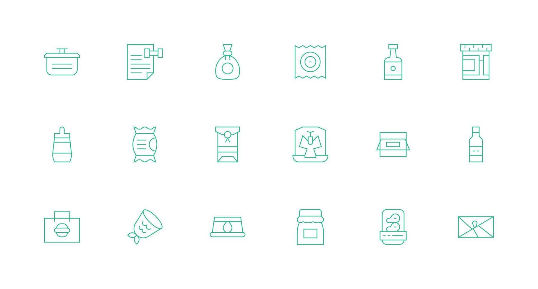 Sealed Set with 18 Minimal Line Icons Sharp Icons for Presentations Free Vector