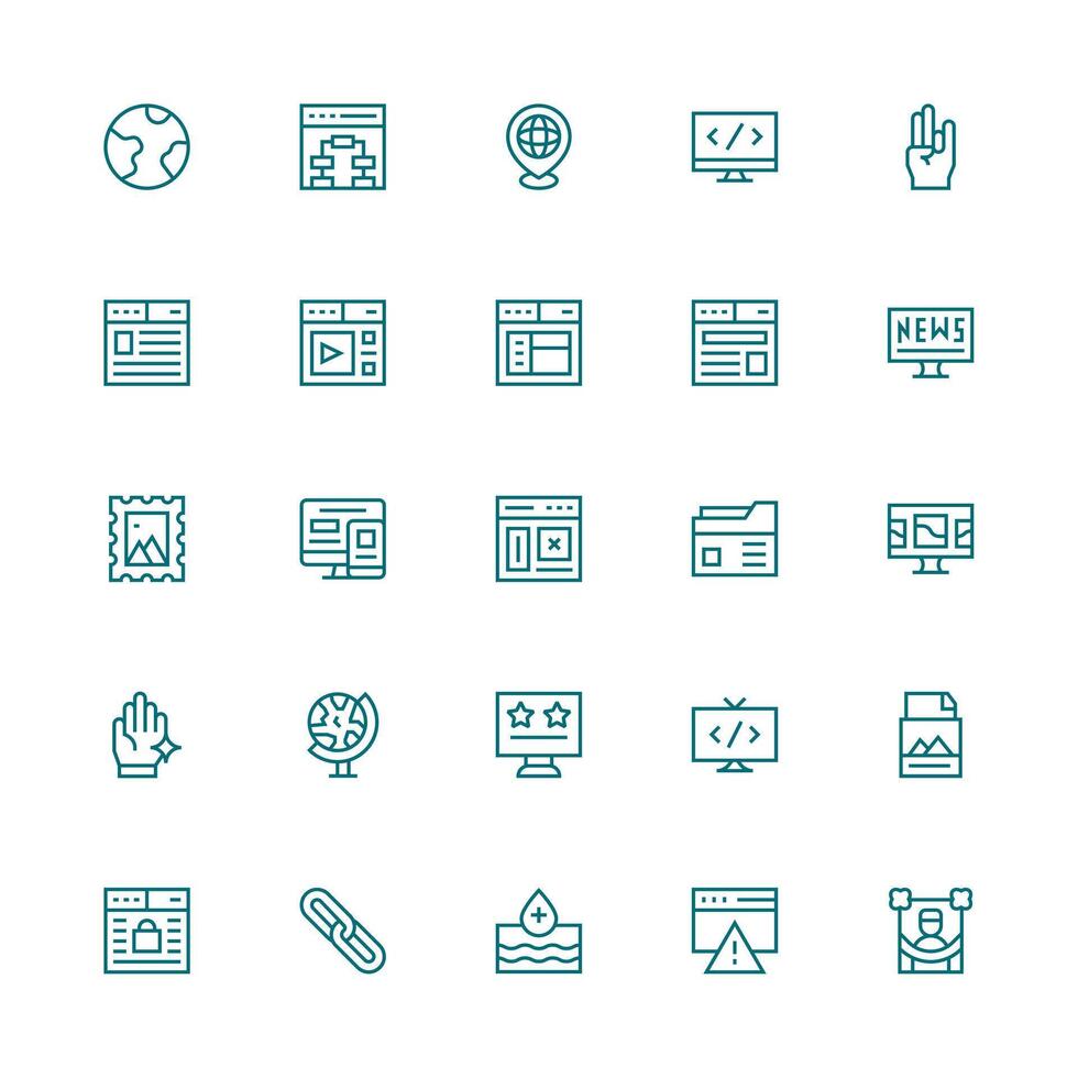 Medium Stroke Outline Style Website Icons with 25 Vectors Minimal Icon Set for Interface Projects