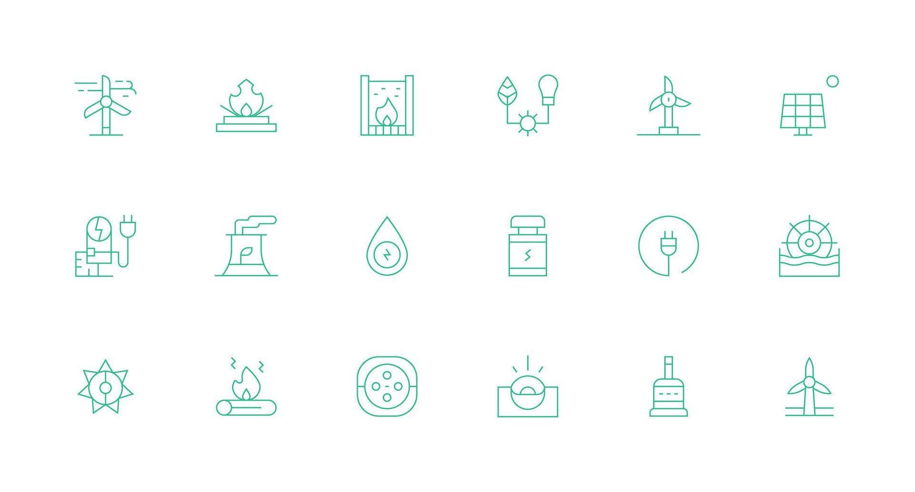 18 Minimal Line Icons for Energy Source Graphics UI Icon Set Free Vector