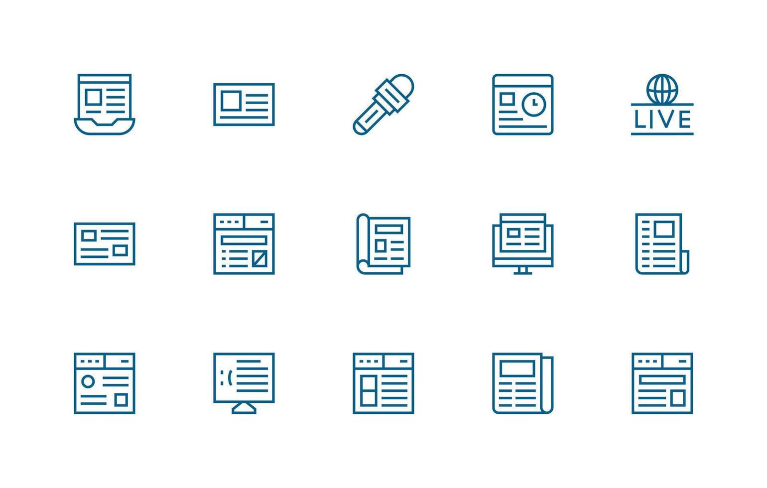 News Icon Set with 15 Regular Line Graphics Icon Set for Web Free Vector
