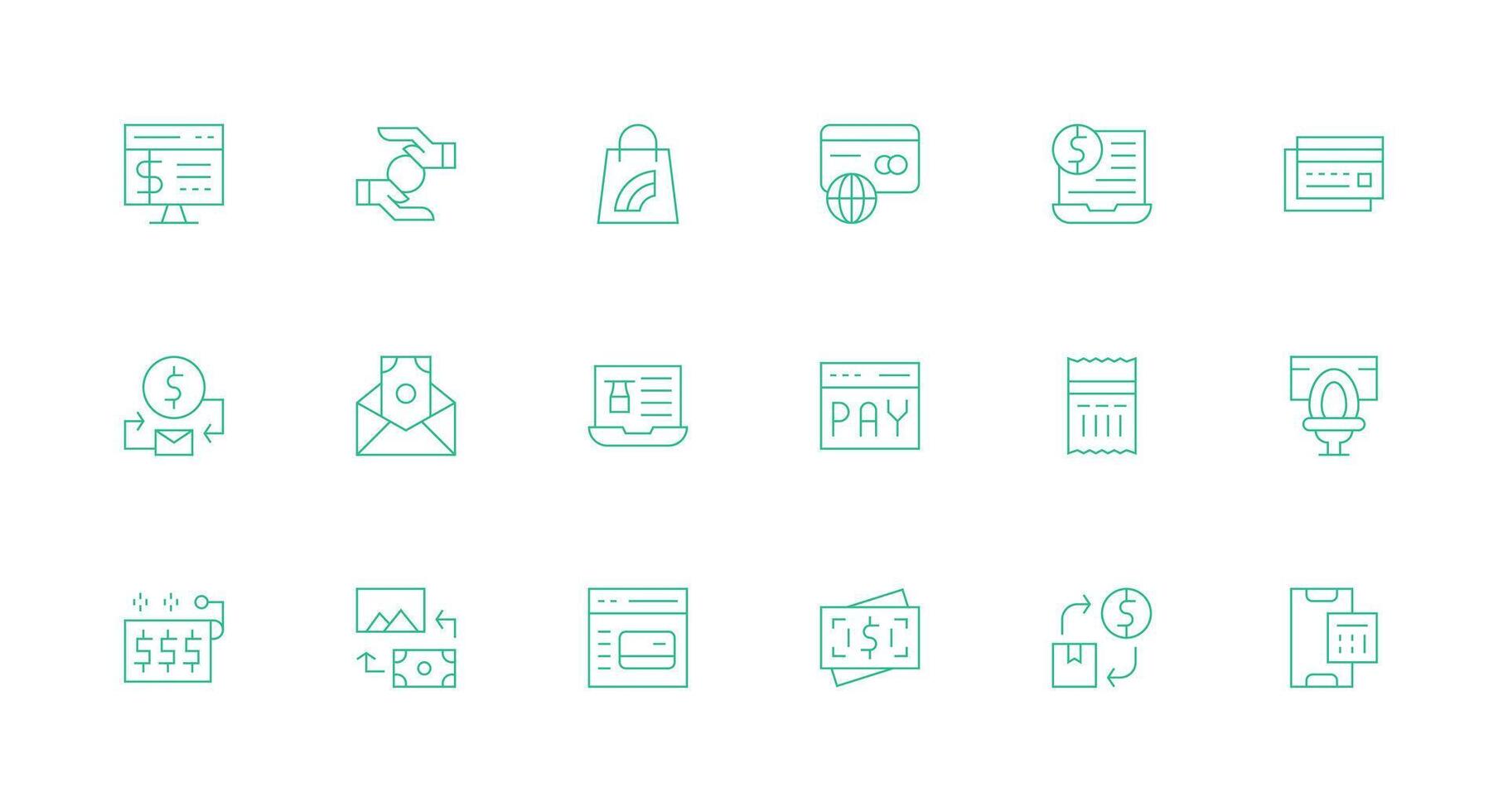 Digital Payment featuring 18 Icons in Minimal Line Design Clean Icon Collection for Web Use Free Vector
