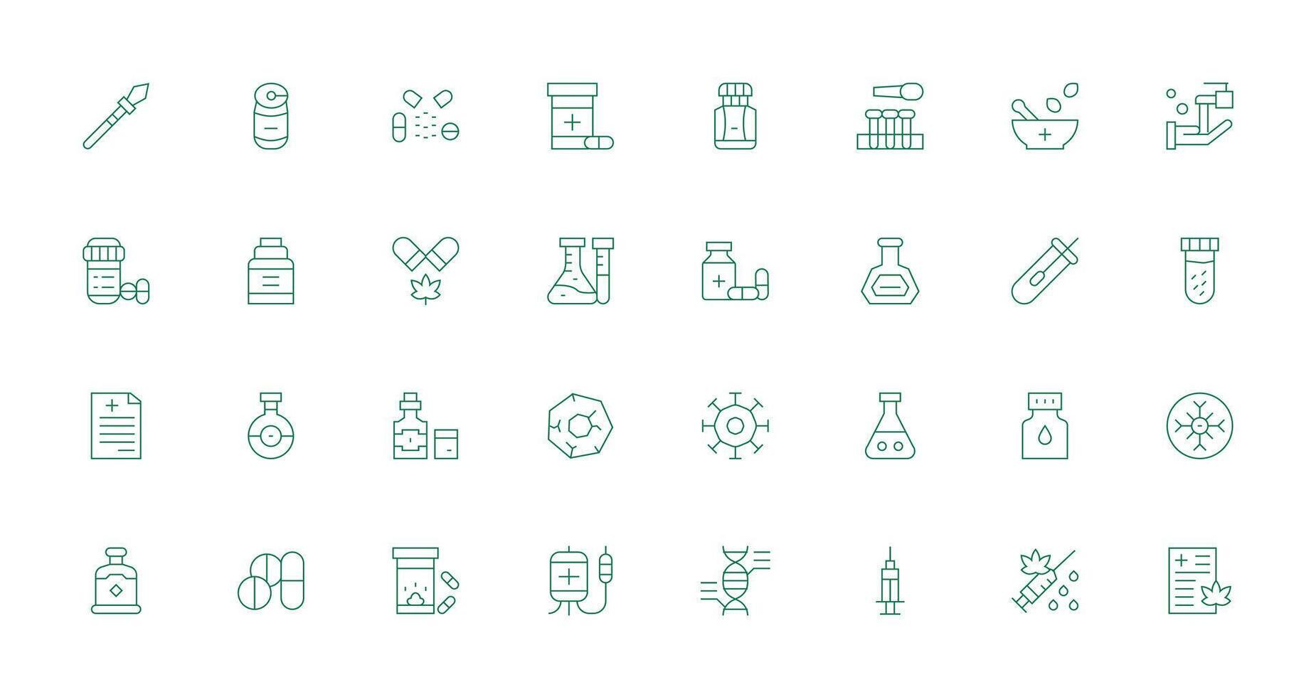 Pharmaceutical Icon Set with 32 Thin Line Graphics Complete Icon Bundle for Web Design Free Vector