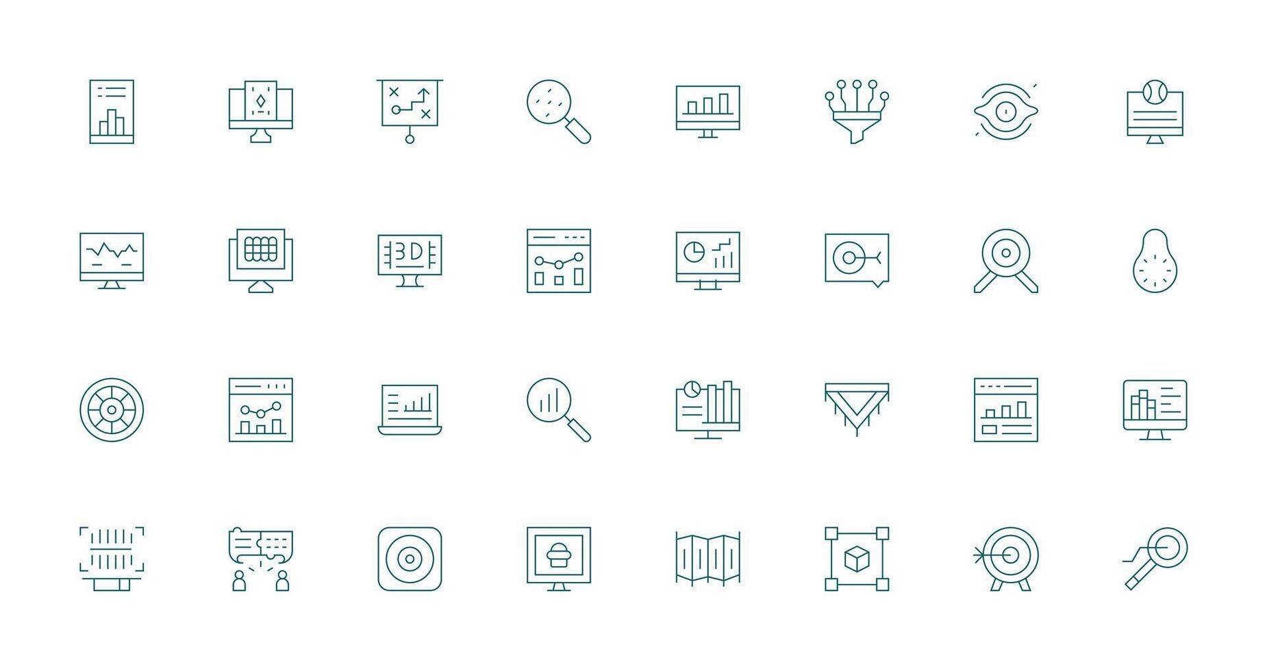 Visualization Set with 32 Thin Line Icons Icon Pack for Various Themes vector
