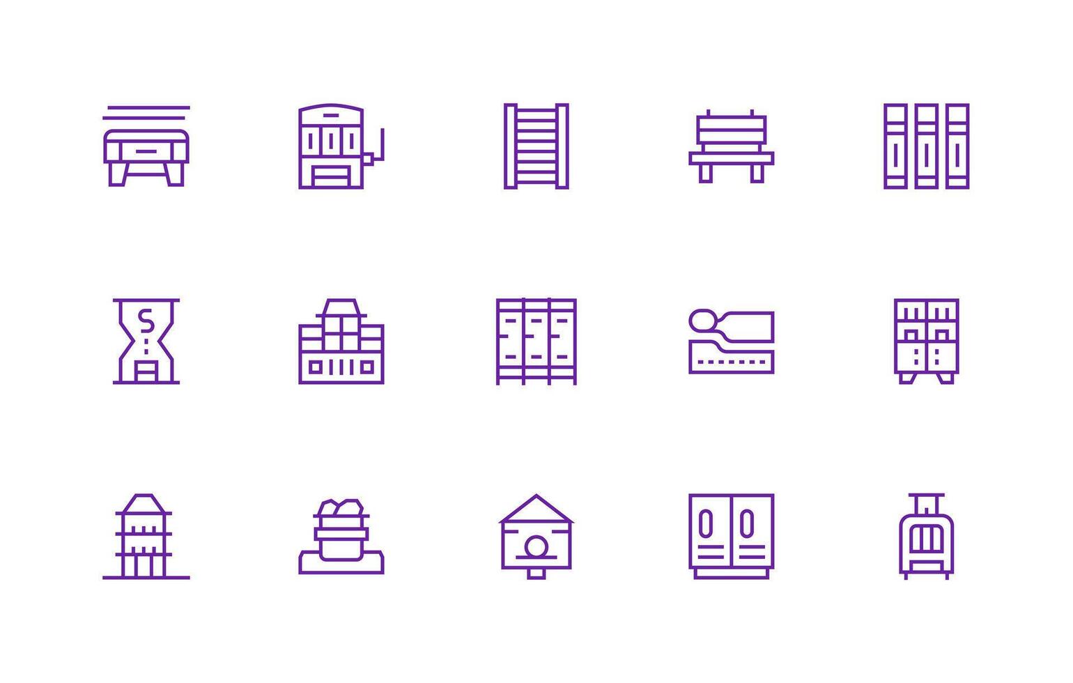 Storage Unit Design Icons featuring 15 in Regular Line Style Web and App Icon Pack Collection vector