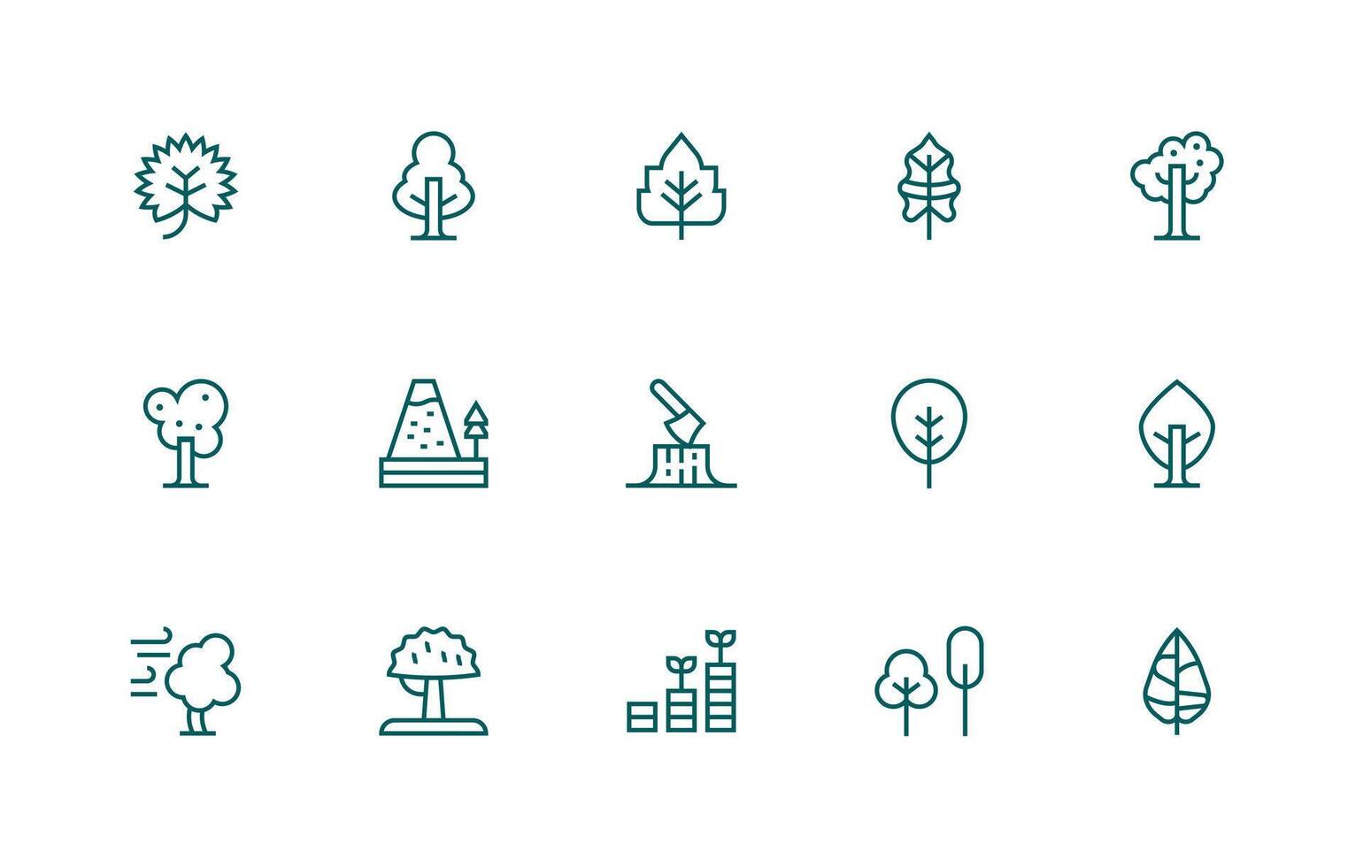Tree Visual Pack containing 15 Regular Line Icons Sharp Icons for Presentations Free Vector