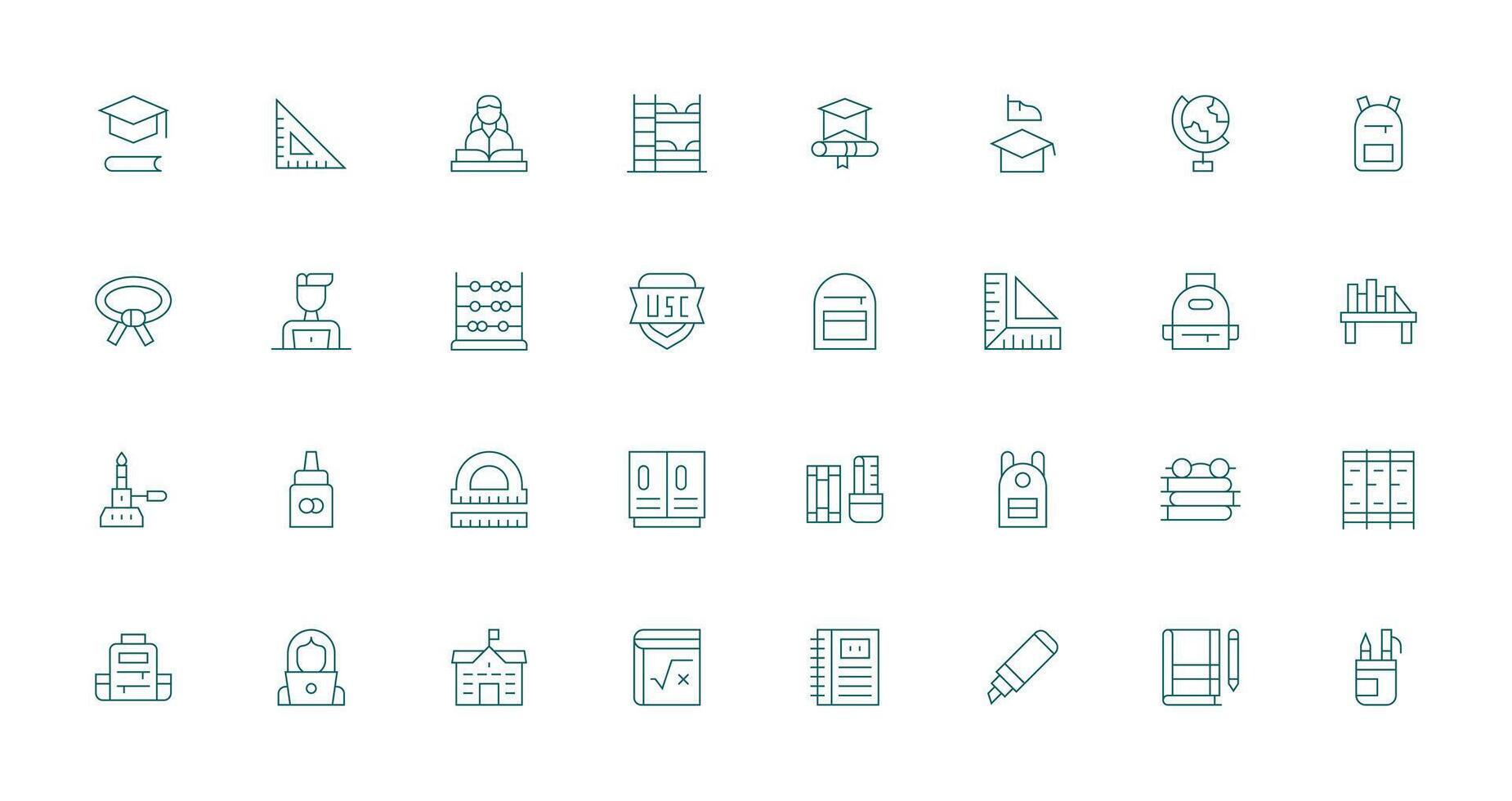 Student Set with 32 Thin Line Icons Full Icon Library for UI Designers vector