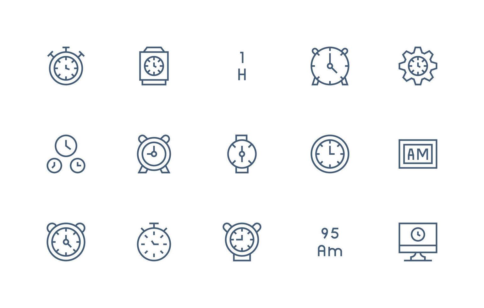 15 Digital Clock Icons in Regular Line Aesthetic Icon Set for Projects vector