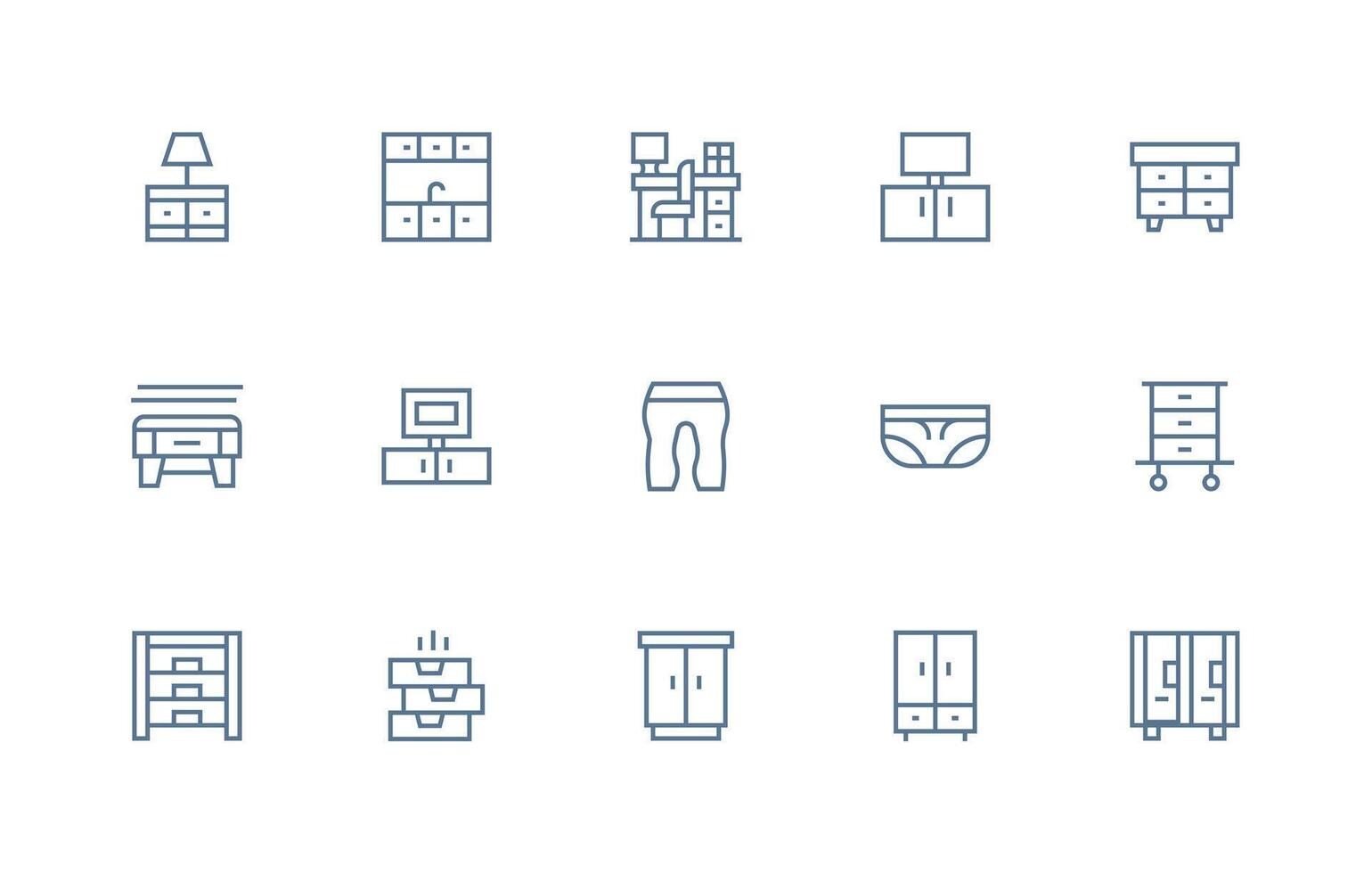 15 Icons for Drawers in Regular Line Format Theme-Based Icon Pack vector