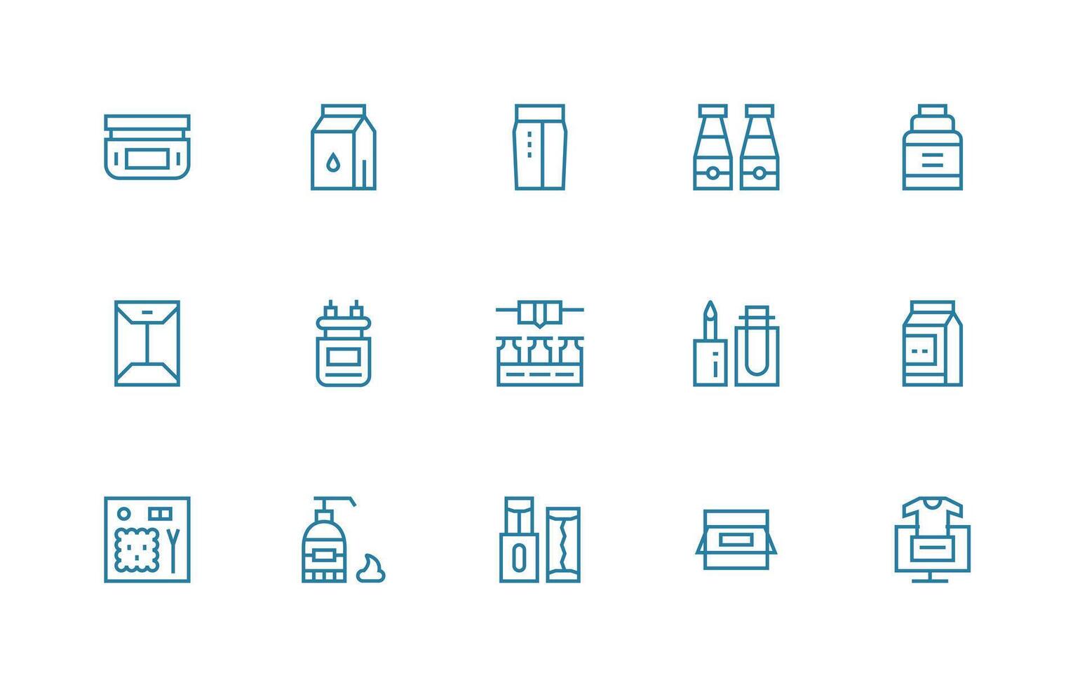 Product Packaging Set with 15 Regular Line Icons Fully Editable Icon Set for Web vector