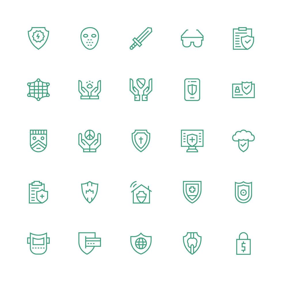 25 Medium Stroke Outline Icons for Shield Graphics High-Resolution Icons for Any Platform vector