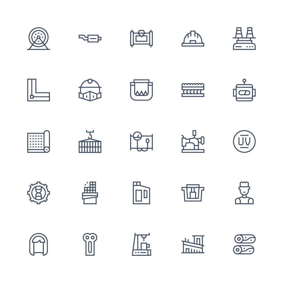 Medium Stroke Outline Style Manufacturing Icons with 25 Vectors Clean Icon Collection for Web Use