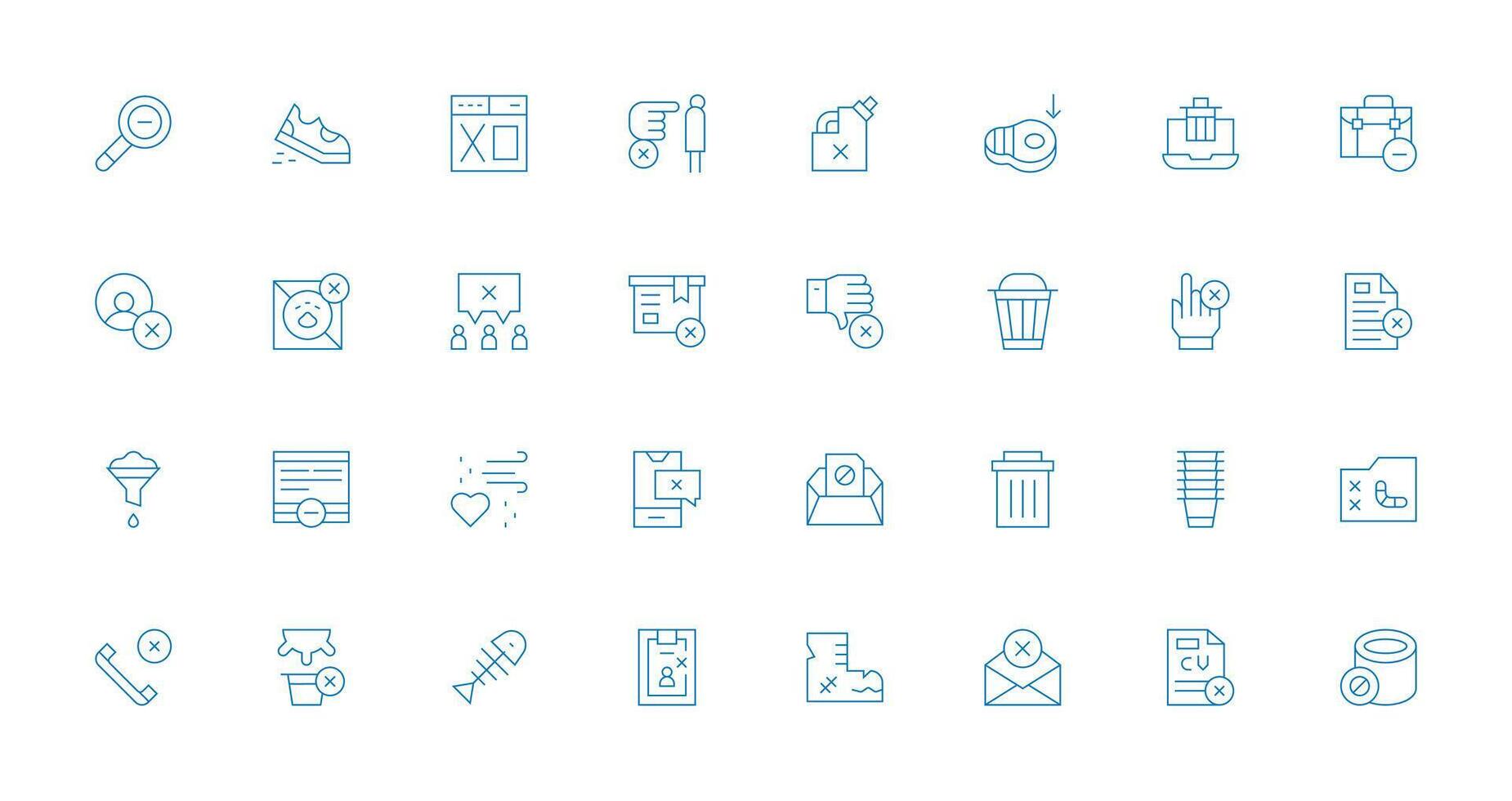 Discard Icon Set with 32 Thin Line Graphics Neatly Designed Icons for Web Platforms vector