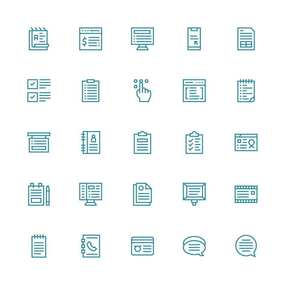 List featuring 25 Icons in Medium Stroke Outline Design Scalable Icons for All Themes vector