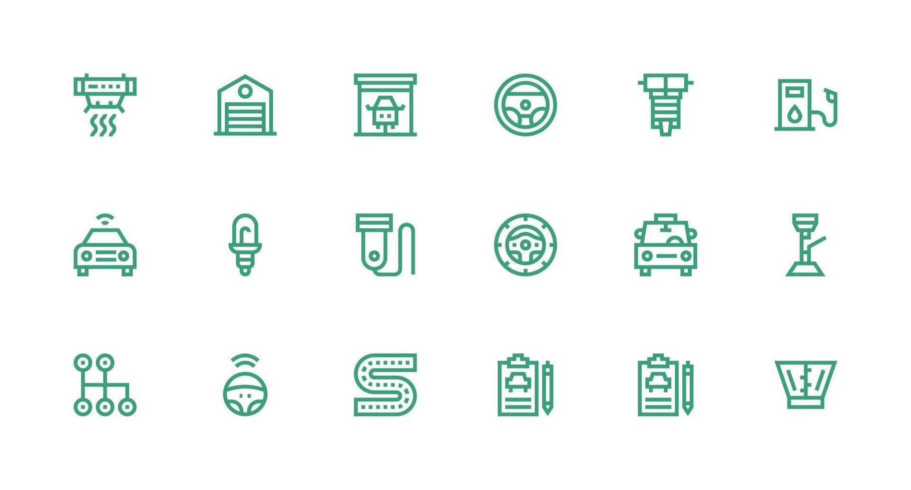 Strong Stroke Line Icons from Auto Set with 18 Vectors Complete Icon Bundle for Web Design Free Vector