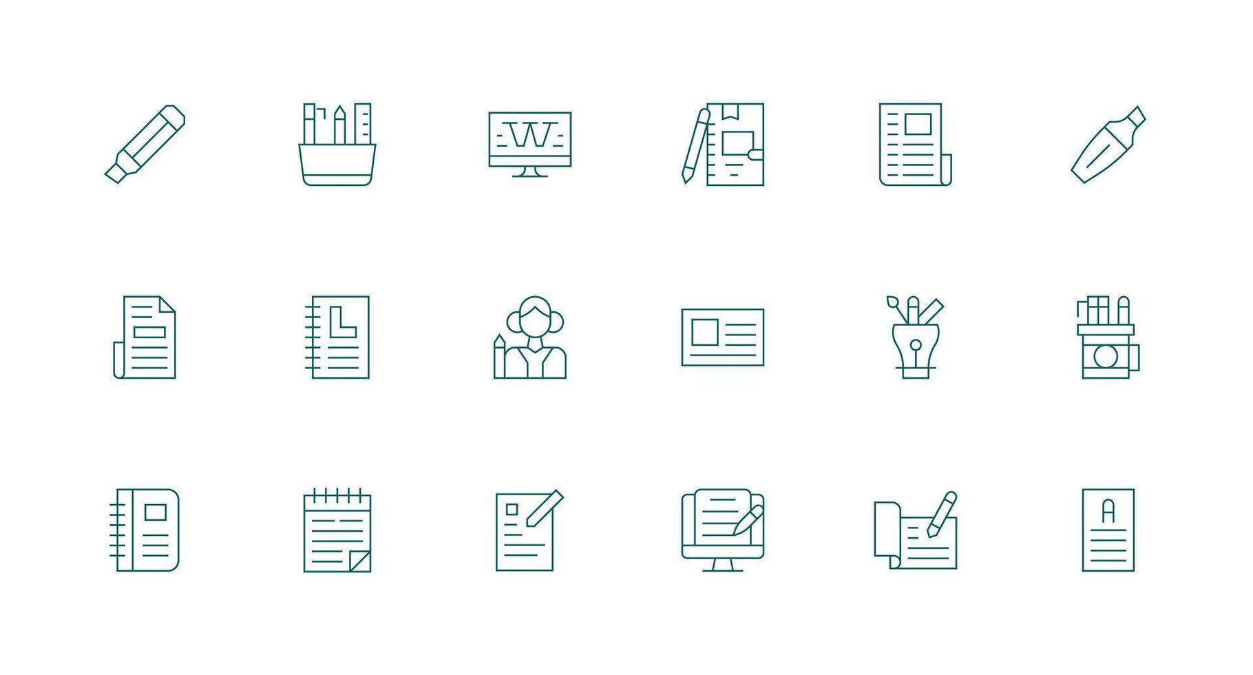 Minimal Line Style Writing Icons with 18 Vectors Essential Icons for Rapid UI Building