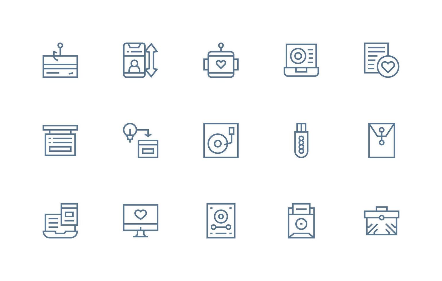 Save Icon Set with 15 Regular Line Graphics Complete Icon Bundle for Web Design Free Vector