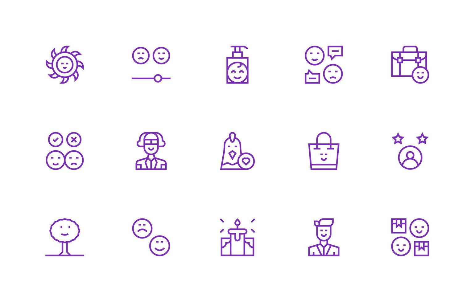 15 Icons for Happy in Regular Line Format Light Icon Series vector