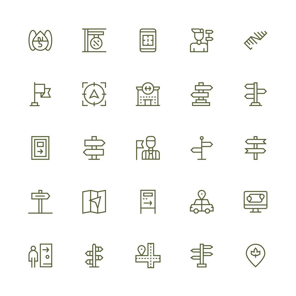 25 Medium Stroke Outline Style Icons from Wayfinding Collection Clean Icon Collection for Web Use vector