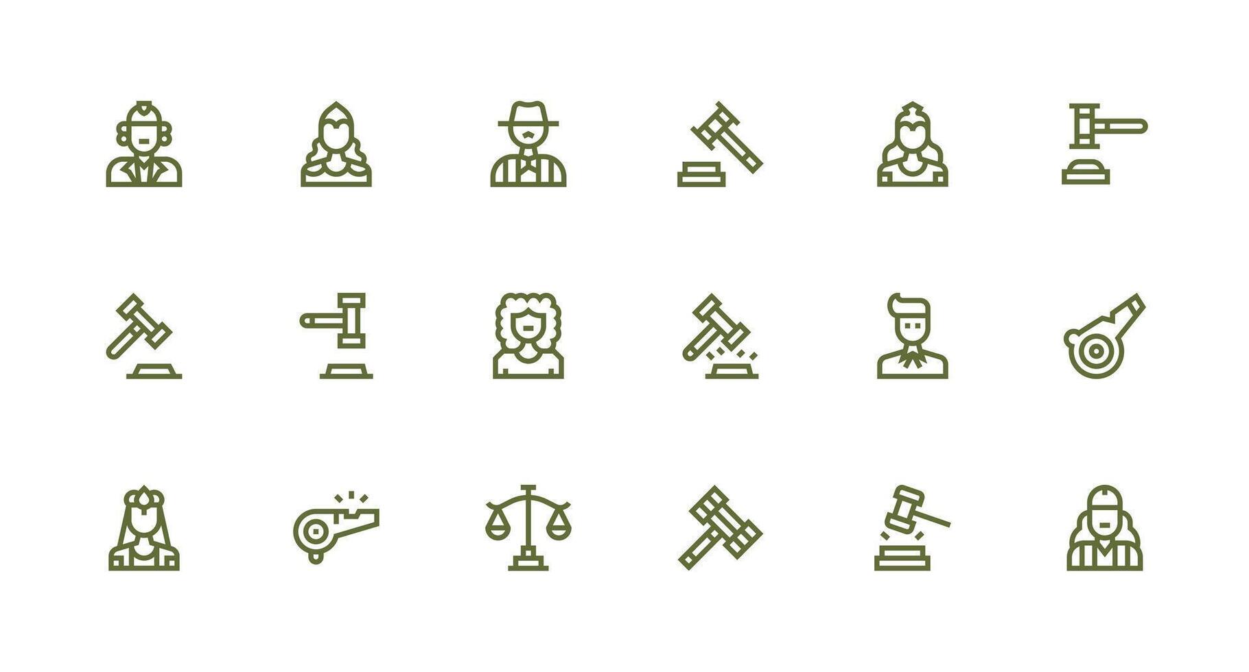 Judge Icon Set with 18 Strong Stroke Line Graphics Flexible Icon System for Web Interfaces Free Vector